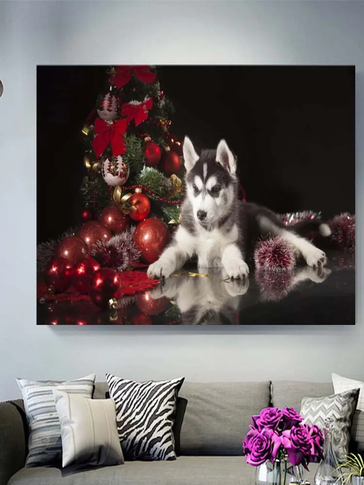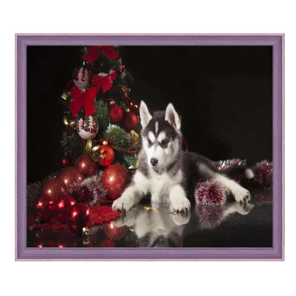 5D Diy бриллиантовый рисунок Рождество украшение для собак хаски, квадратная Круглая Мозаика, вышивка бисером, милые животные