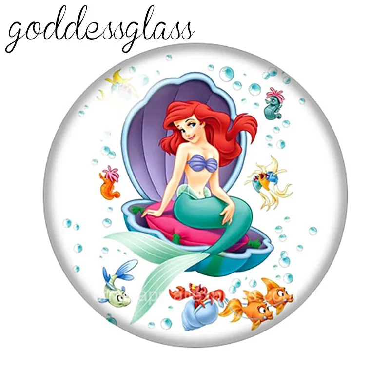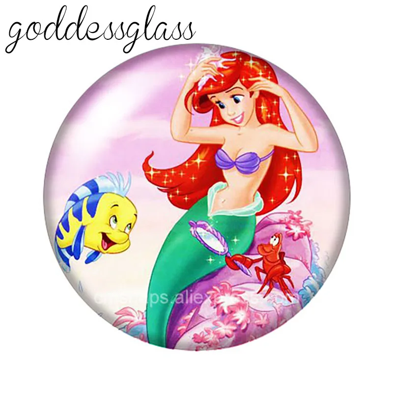 Круглые пуговицы с фотографиями Принцессы Диснея, Русалочки, Ариэль, 18 мм, 10 шт., для браслетов 18 мм, оптовая продажа ювелирных изделий