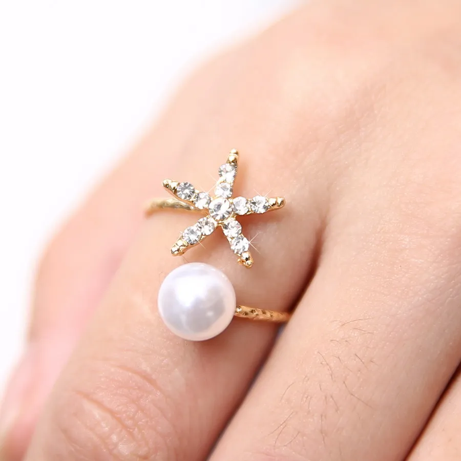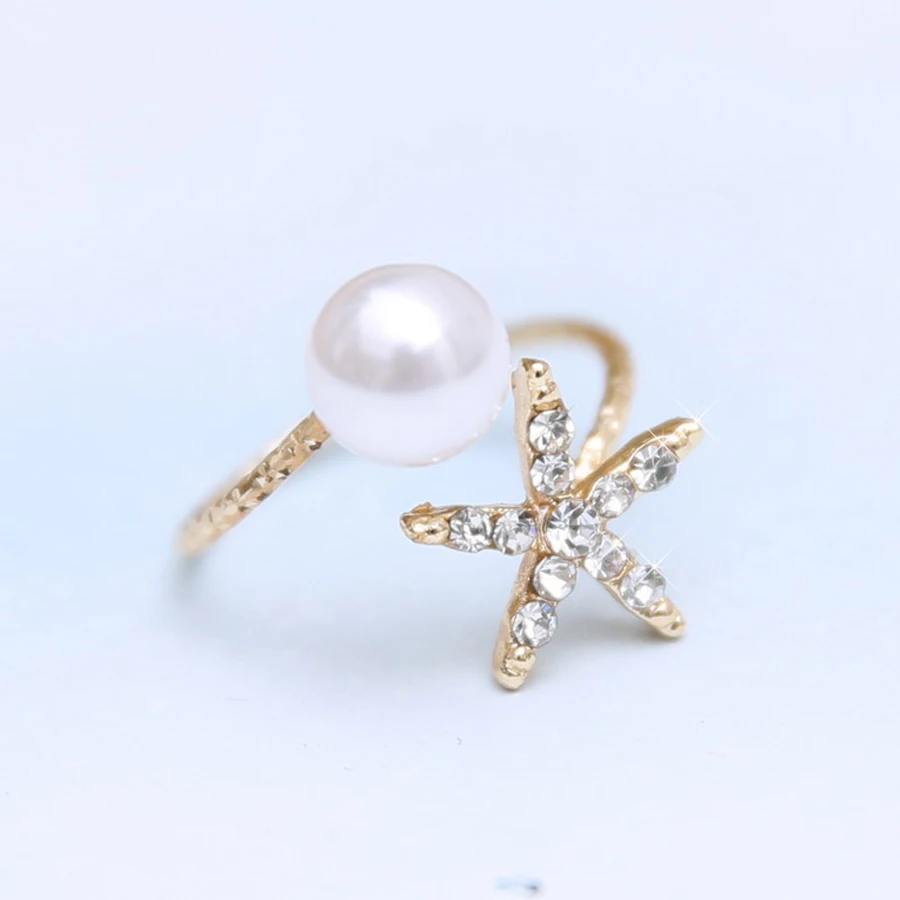 Кольцо женское, с жемчугом и морской звездой, регулируемое