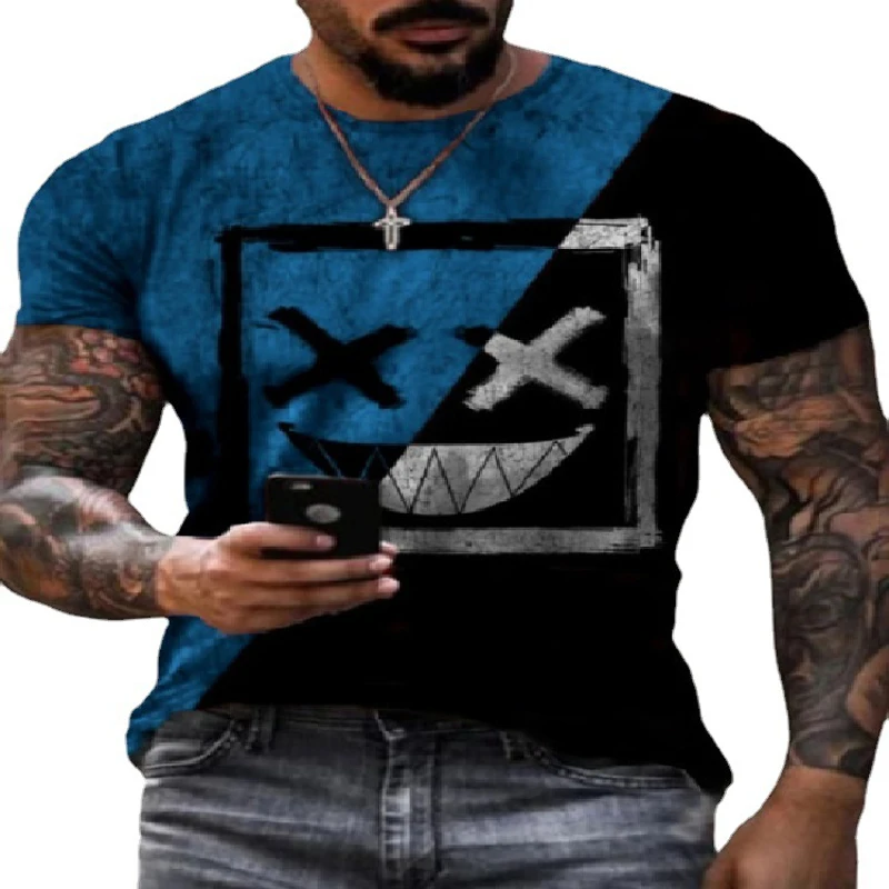 Футболка мужская с круглым вырезом, свободная рубашка с геометрическим принтом, с коротким рукавом, в стиле хип-хоп, летняя одежда