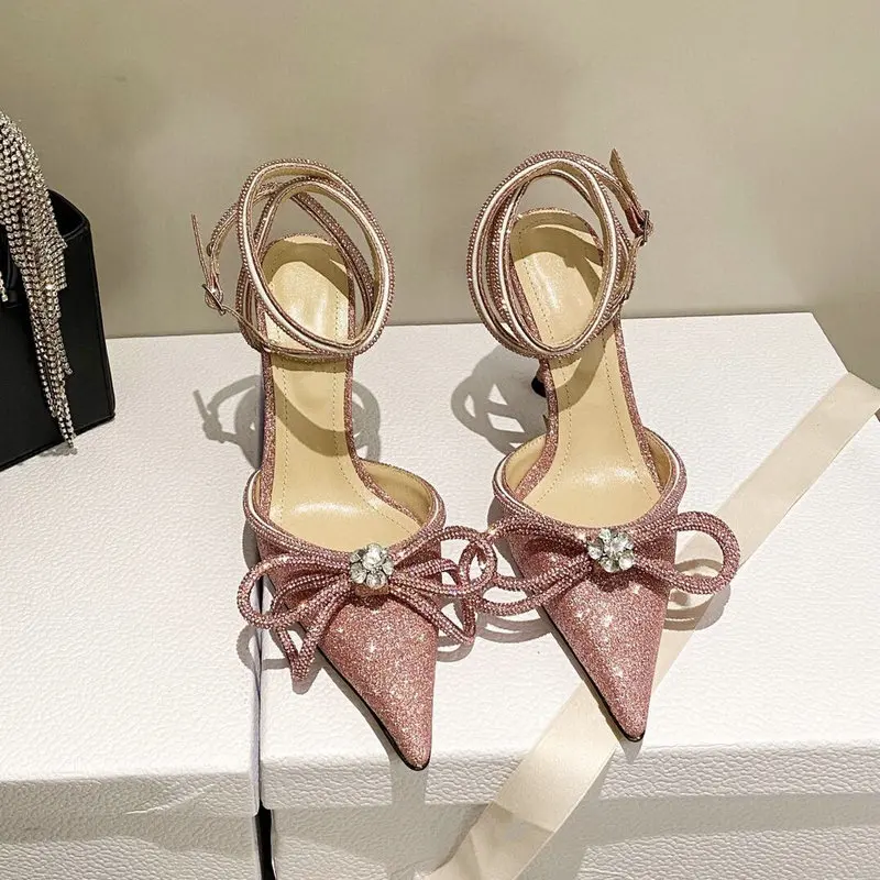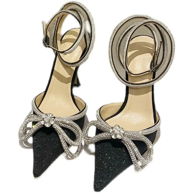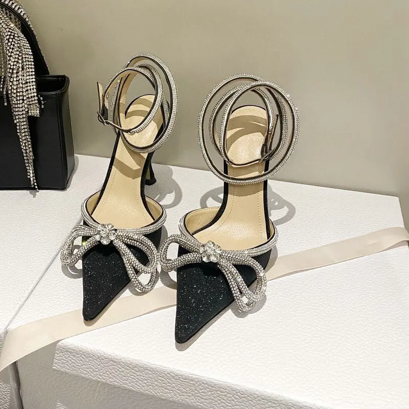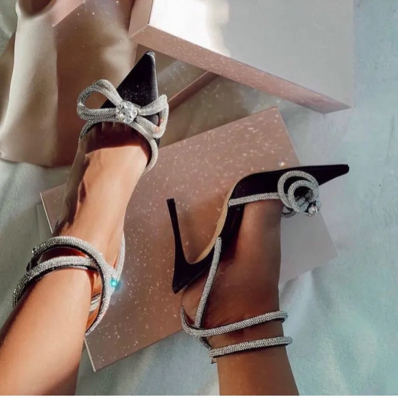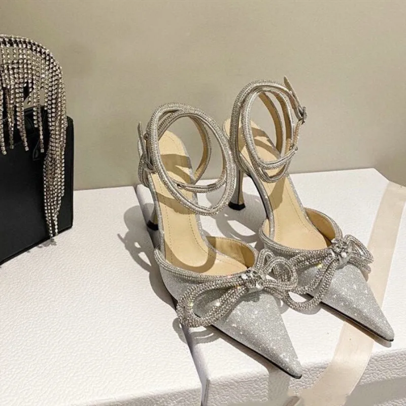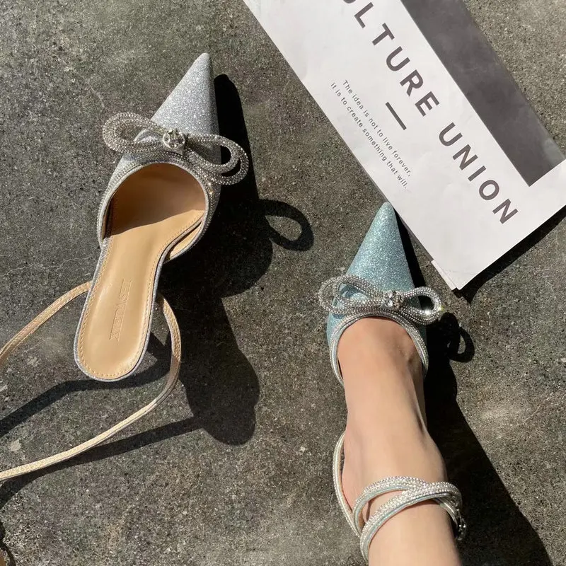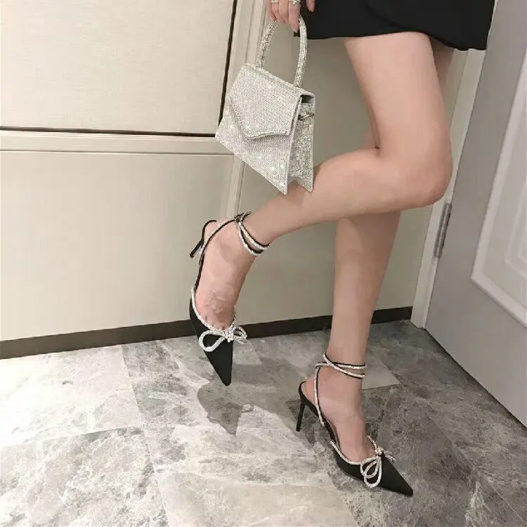 Женские сандалии стразы с бантом-бабочкой, босоножки на тонком кабл...
