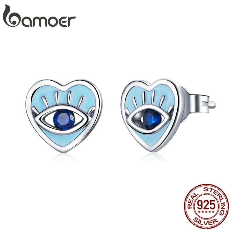 Серебряные серьги дьявольский глаз bamoer, западные мифические синие циркониевый в форме сердца, серьги из стерлингового серебра 925 пробы, ювелирные изделия для женщин SCE1134