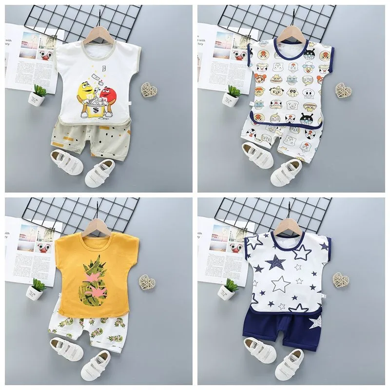 Новинка 2021, комплект детской одежды для мальчиков, летняя футболка с коротким рукавом и шорты с мультяшным рисунком для малышей, 2 шт.компл., хлопковый костюм для маленьких девочек