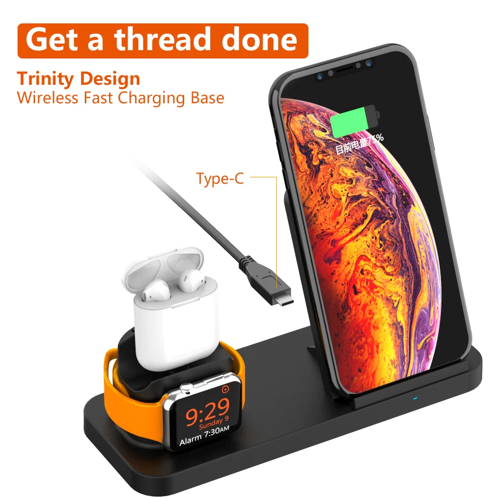 Многофункциональный дизайн продукта идеи, вы можете зарядить свой мобильный телефон, для apple watchhouse, для airpods в то же время.