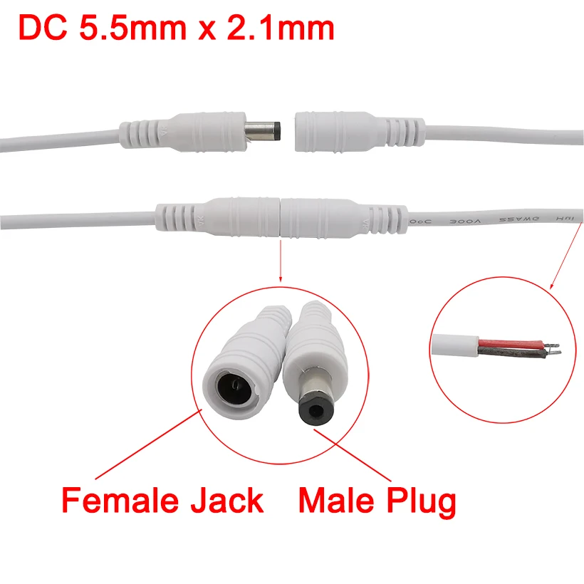 UesageDC 2.1mm x 5.5mm Wire Power Pigtails Adapter Barrel Plug Socket Cables