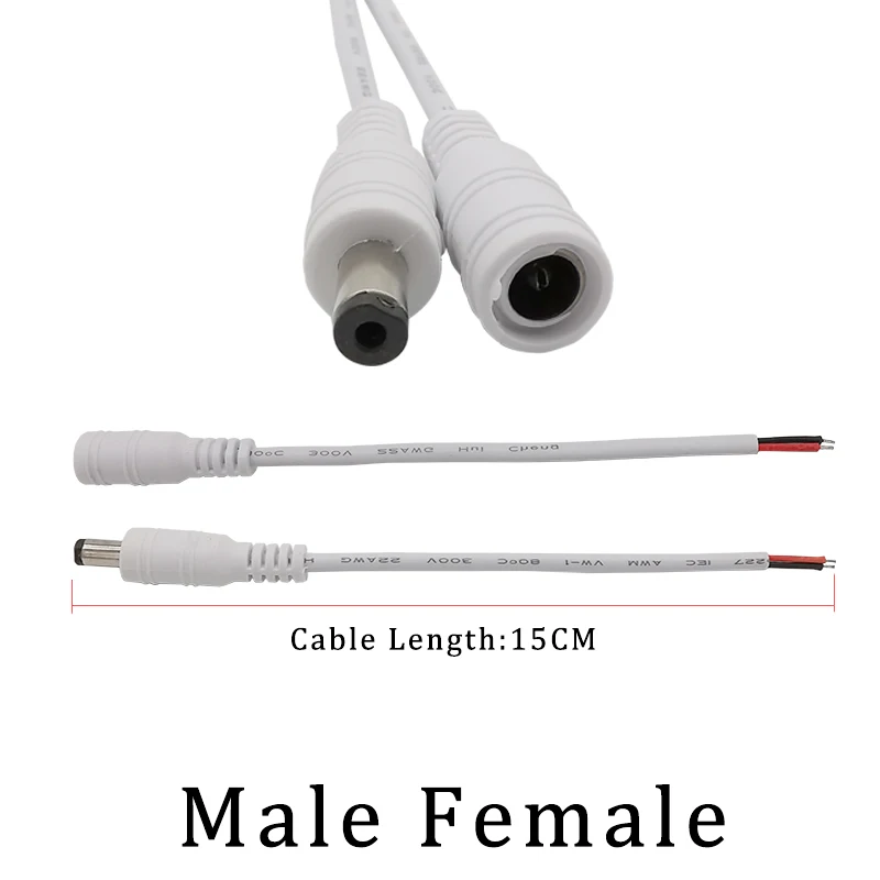 10 шт.лот белый разъем постоянного тока 5,5X2,1 мм 12 в источник питания постоянного тока штекер гнездо 15 см кабель проводной отрезной адаптер для светодиодной ленты