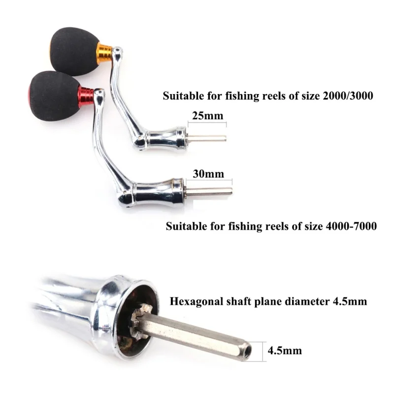 Особенности:1 изготовлен из высококачественного металлического материала с прочными и прочными характеристиками, легкий и портативный.2 ручки изготовлены из ЭВА, удобные и противоскользящие.3 металлический шестигранный ствол, прочный и небьющийся, обеспечивает прочную фиксацию на катушке.4 установлен на рыболовной катушке, которая будет иметь гладкий и легкий встряхивание.5 дизайн с одной ручкой, простота установки, дает вам удобный пользовательский опыт.6 подходит для катушки для литья под давлением, круглой катушки и т. д.7 подходит для использования в соленой или пресной воде, устойчивость к коррозии.