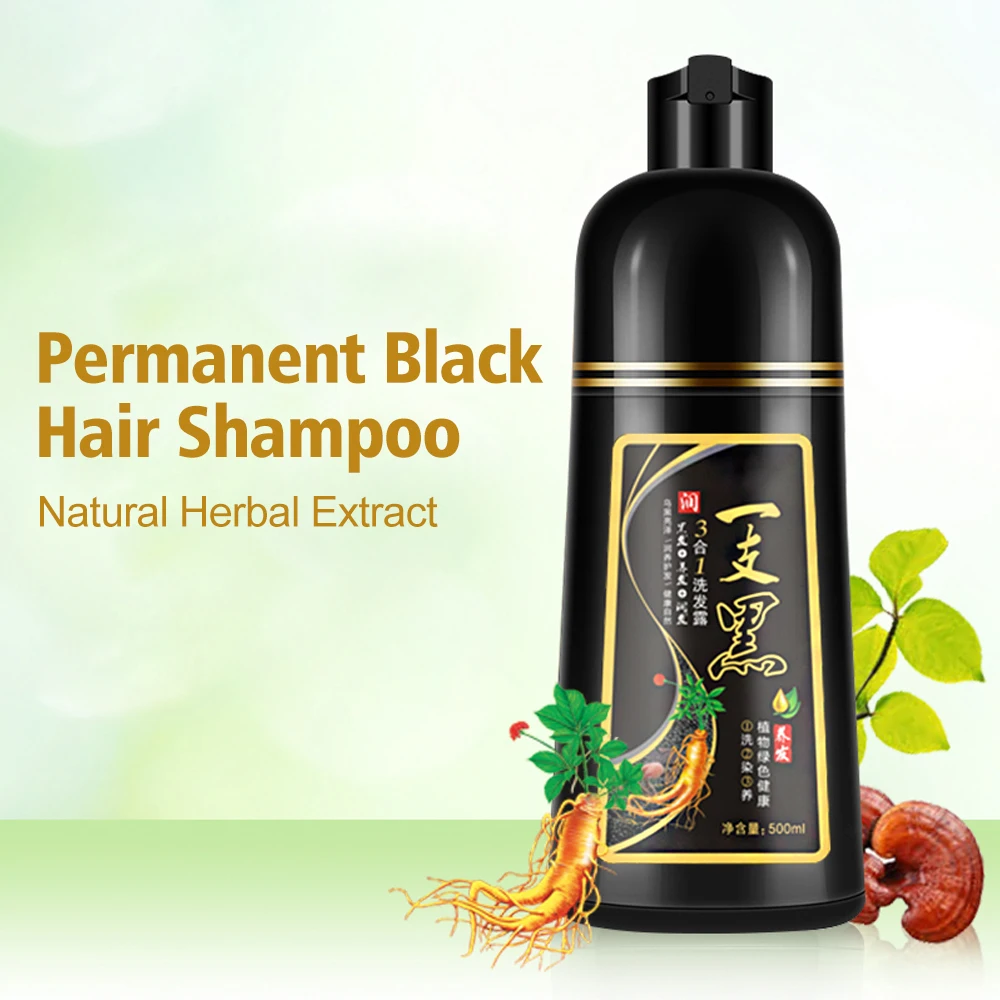 Перманентный шампунь для черных волос, 500 мл, Органическая натуральная быстрая краска для волос, растительная эссенция, черная краска для волос, шампунь для женщин и мужчин