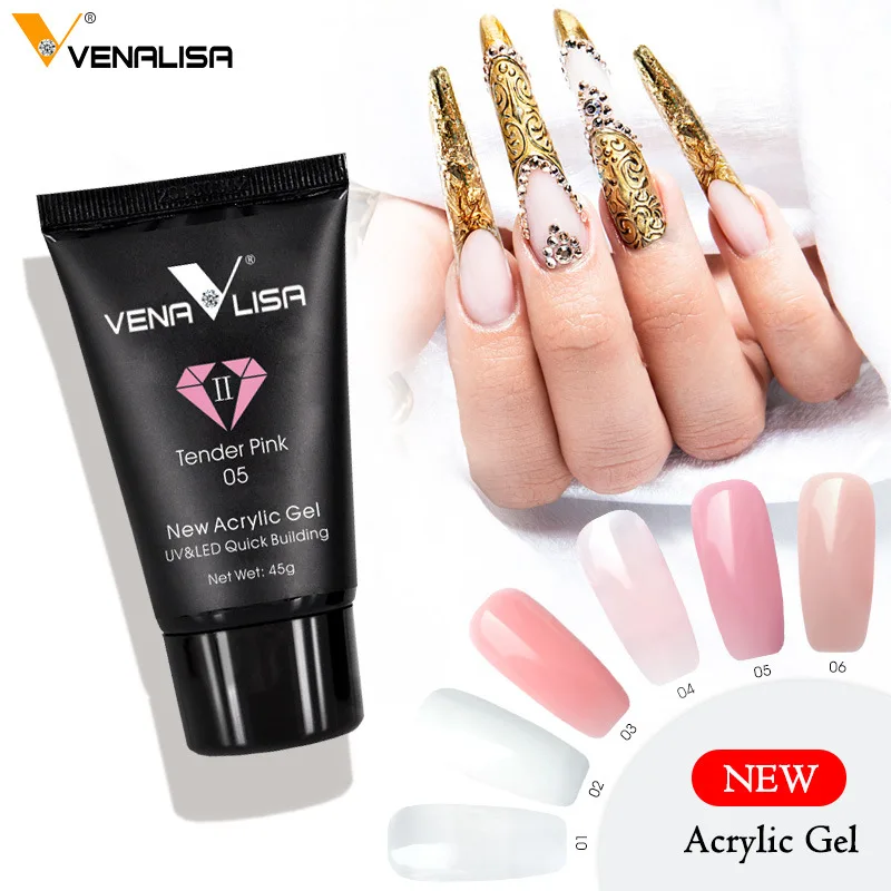 Полигель Venalisa 45 г для дизайна ногтей, Акриловый Прозрачный Гель-лак для наращивания ногтей с кристаллами