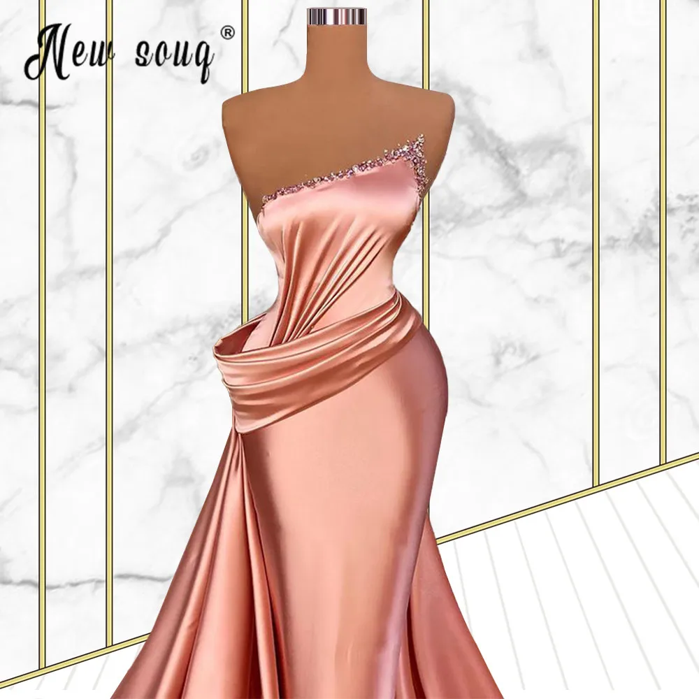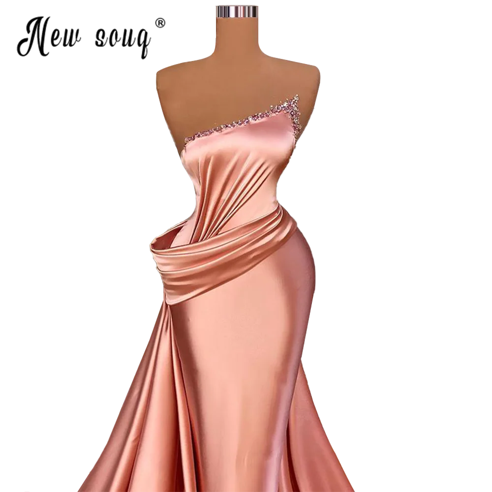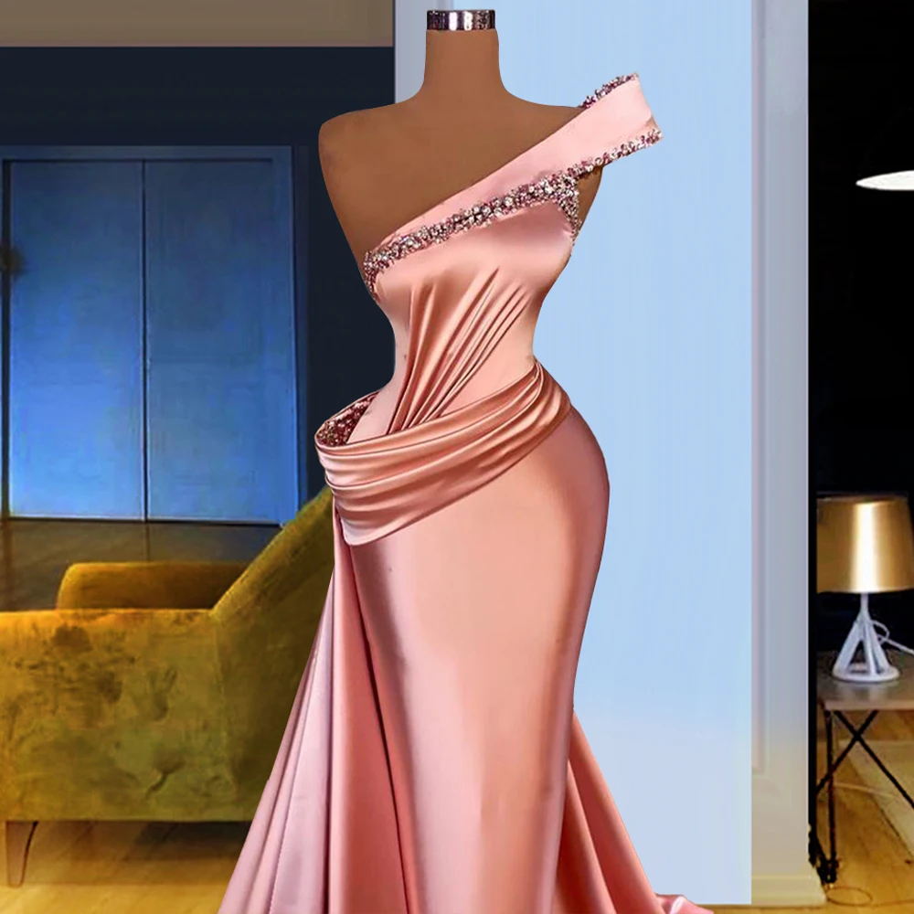 С открытыми плечами из розового сатина, вечернее платье 2021 из бисера и плиссированное платье-Русалка для выпускного на арабском, Длинное нарядное платье халаты вечернее платье