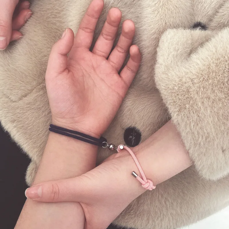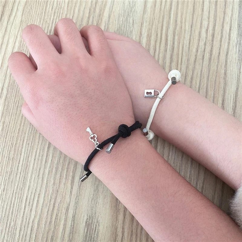 Браслет с замком для женщин и мужчин, изящный плетеный браслет дружбы из шнура с расстоянием, с магнитом, для влюбленных пар, 2 шт.