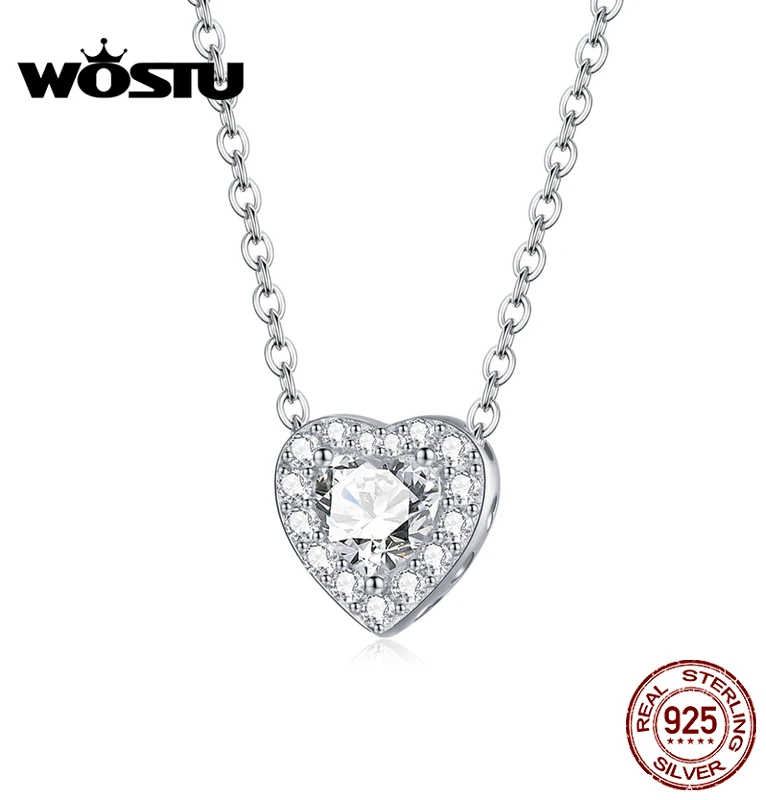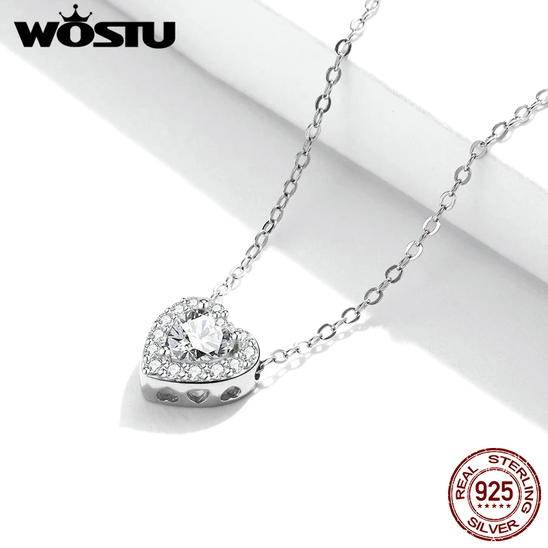 WOSTU 925 стерлингового серебра любящее сердце ожерелье элегантые д...