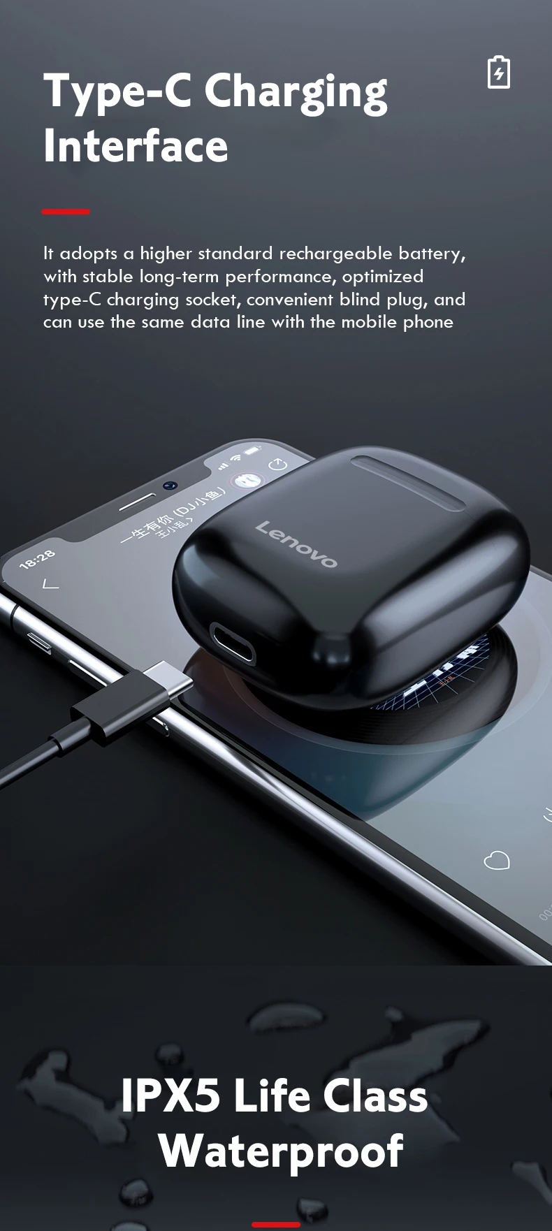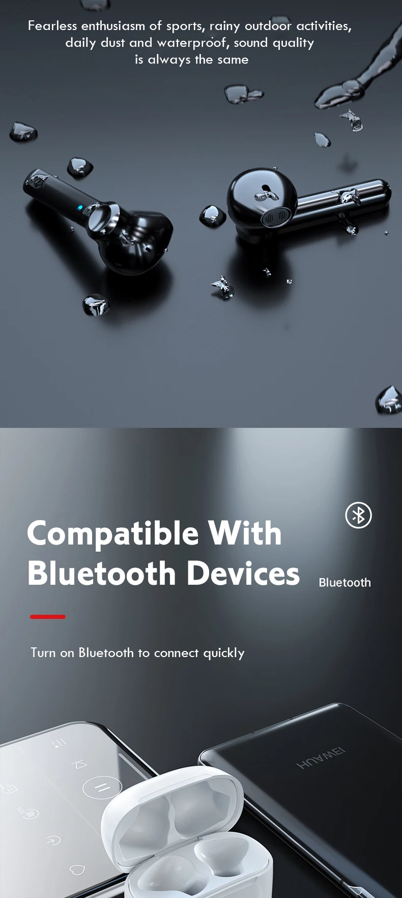 Feature 2Waterproof + Binaural Call + 300mAh Charging Case