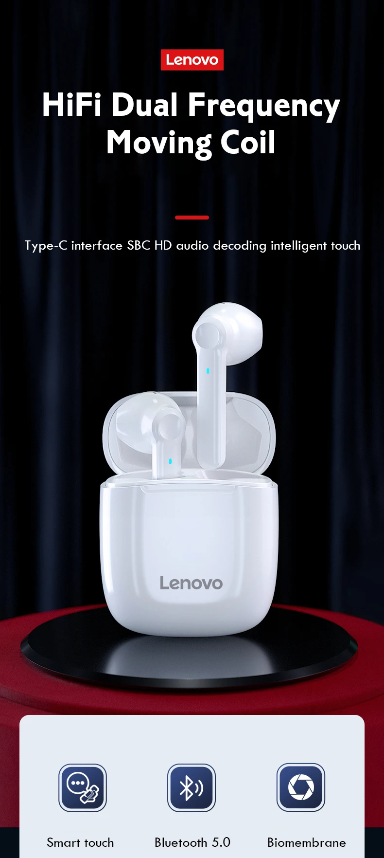 TWS-гарнитура Lenovo XT89, Bluetooth 5,0, с сенсорным управлением