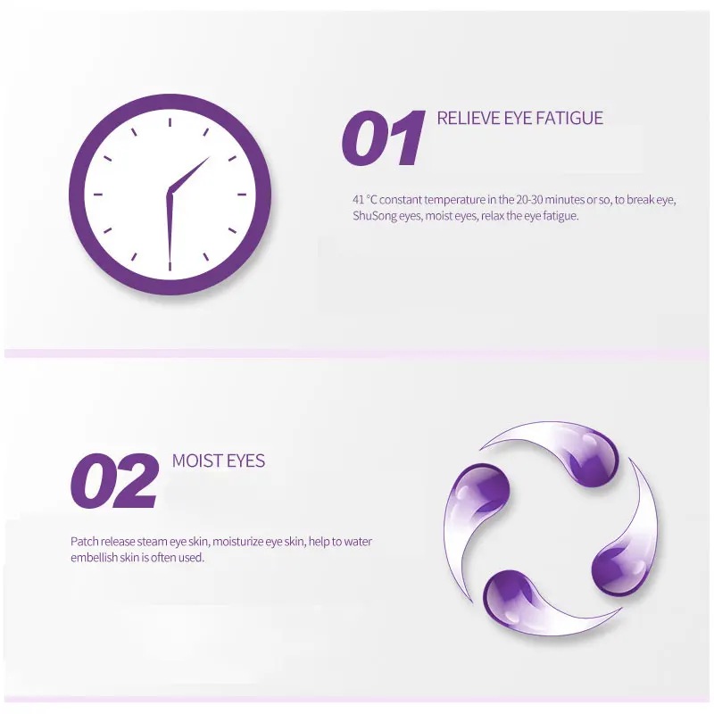 2. Увлажнение глаз: маска для глаз выпускает пар, чтобы обернуть кожу вокруг глаз и увлажнить кожу вокруг глаз. Регулярное использование поможет увлажнить кожу вокруг глаз;