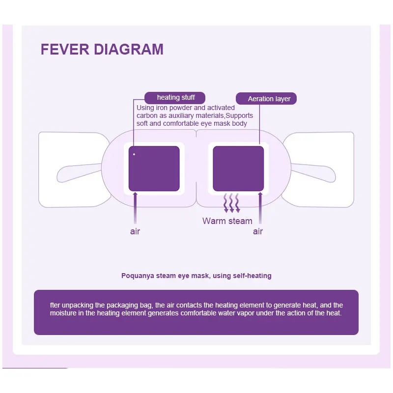 Теплая при 41 °C, Паровая маска Poquanya использует паровой горячий компресс, чтобы Паровая маска глаз согрелась при 41 °C в течение 25 минут, образуя невидимый водяной туман, увлажняя глаза, И нагревание для сна.