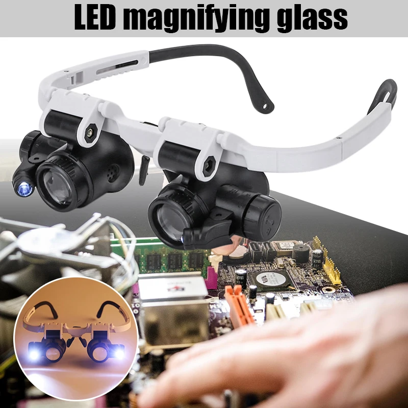 Лупа со светодиодной подсветкой, увеличительное светодиодный с креплением на голову, для часовщиков, ювелирных украшений