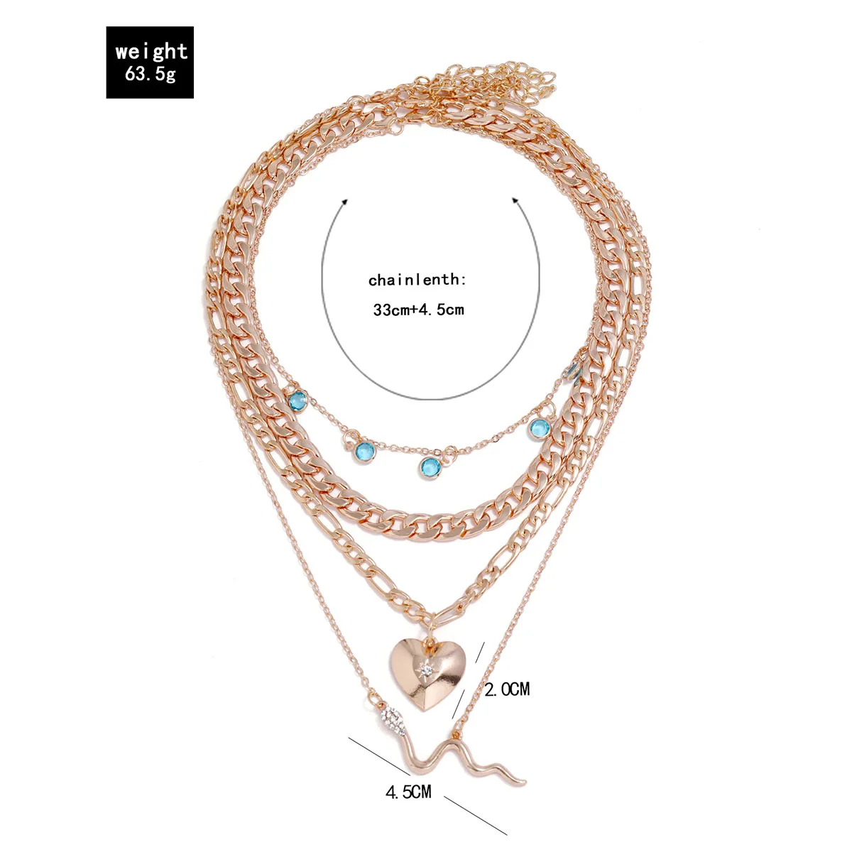 Gothtic Золото цветной многослойный змея ожерелье с подвеской в форме сердца для женщин в богемном стиле животных Зеленые Бусины цепочкой плетения Фигаро ювелирные изделия с чокерами подарок