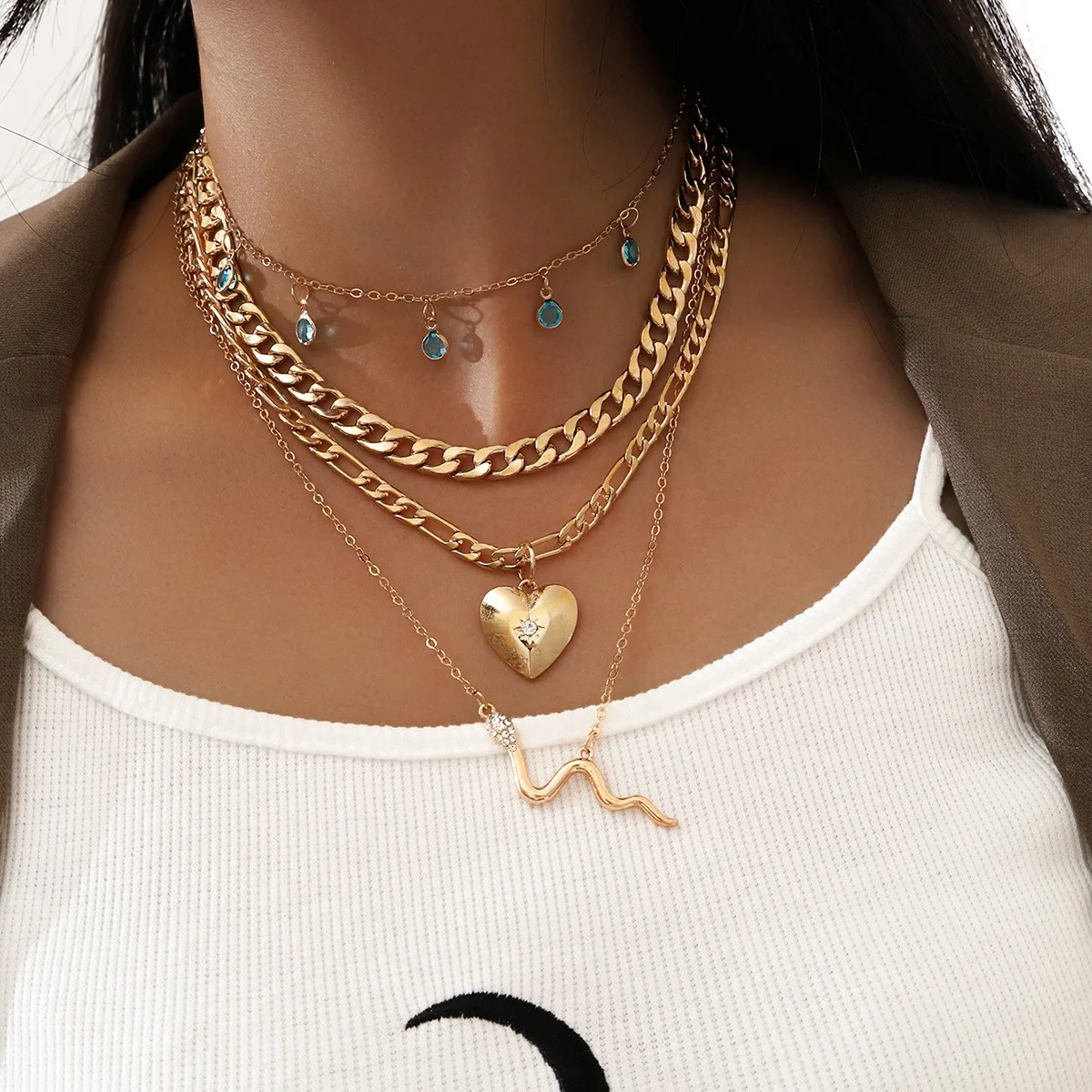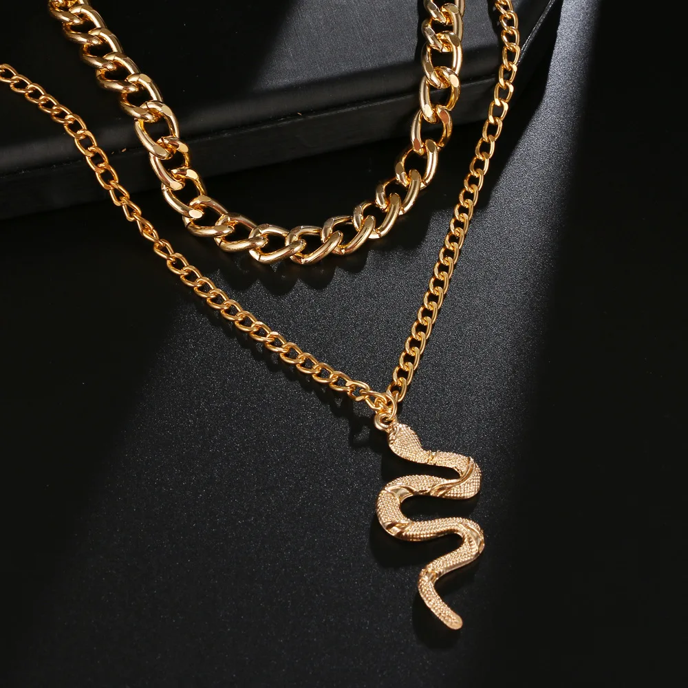 EN ретро многослойная цепочка с подвеской в виде змеи для женщин мо...
