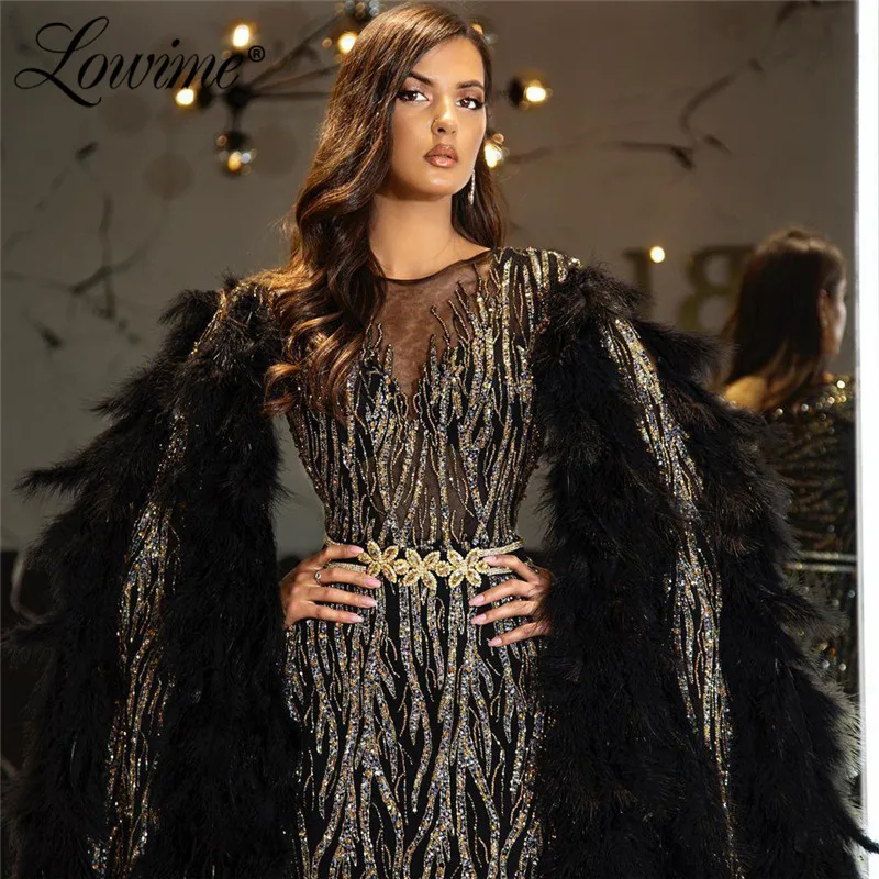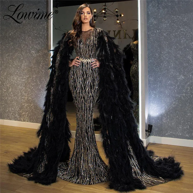 Дубай черный класса люкс с блестками вечернее платье 2021 с О-образным вырезом накидка с длинными пышными рукавами для женщин Формальные Вечерние платья для выпускного вечера