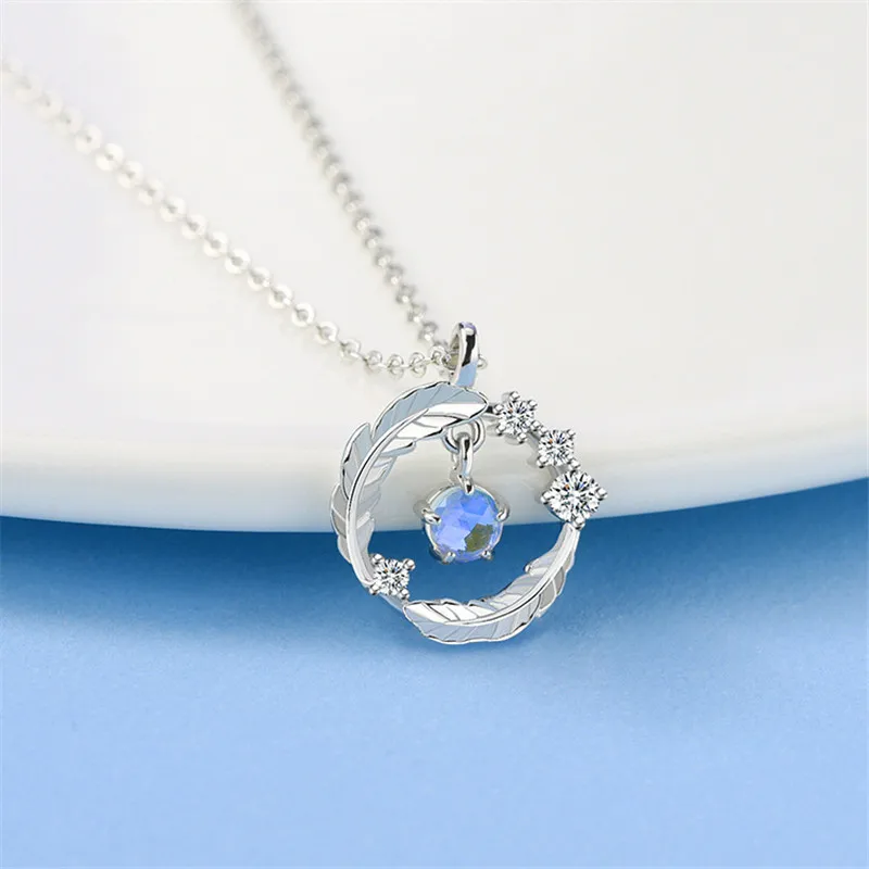 Ожерелье серебряного цвета с круглыми бусинами и перьями из лунного камня для женщин и девушек ювелирные изделия Чокер dz460