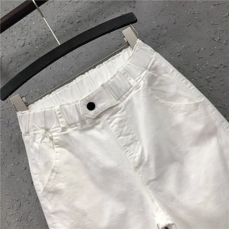 2021 летние новые белые брюки большого размера, свободные тонкие эластичные брюки с высокой талией повседневные брюки-гаремы, женские брюки