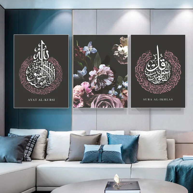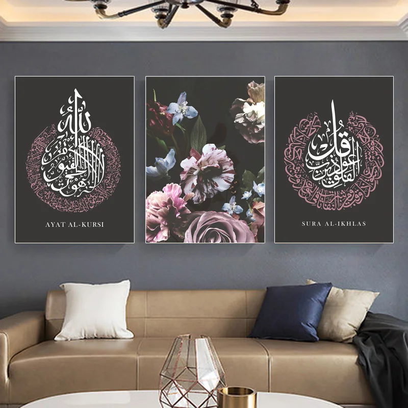 Lslamic Цветочная Картина на холсте Коран Алфавит каллиграфия искусственные картины на стену украшение для дома