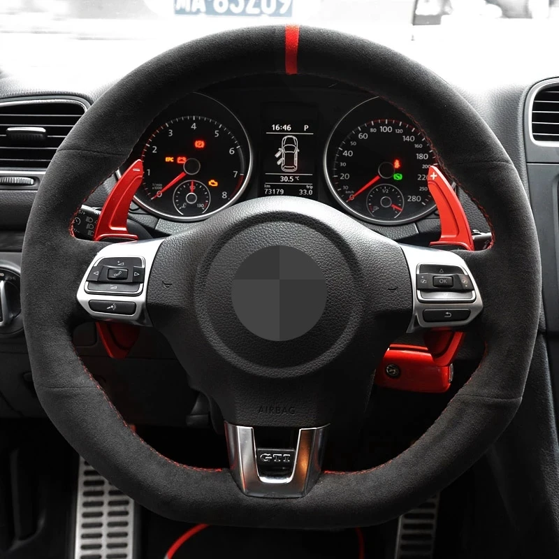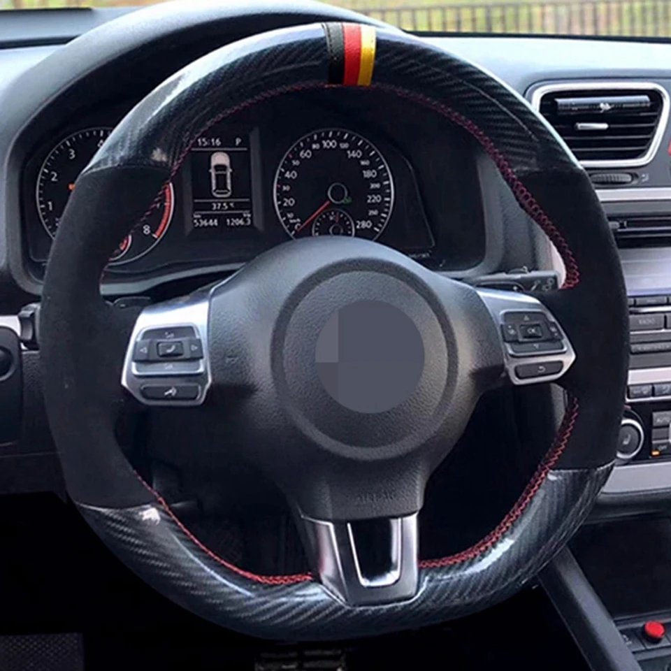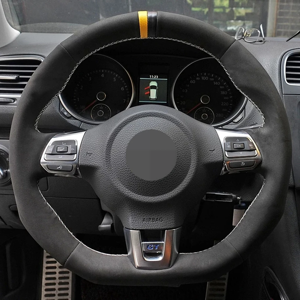 Чехол рулевого колеса автомобиля Мягкий черного цвета из натуральной кожи и замши, для Volkswagen Golf 6 GTI MK6 Polo GTI Scirocco R Passat CC