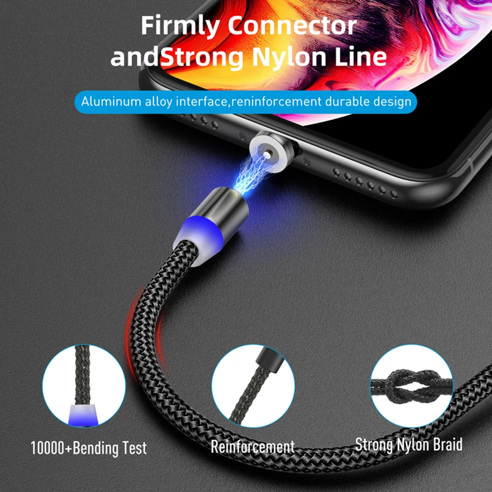 FeatureMagnetic USB Type C Cable Micro USB Cable Nylon Braided LED Indicator