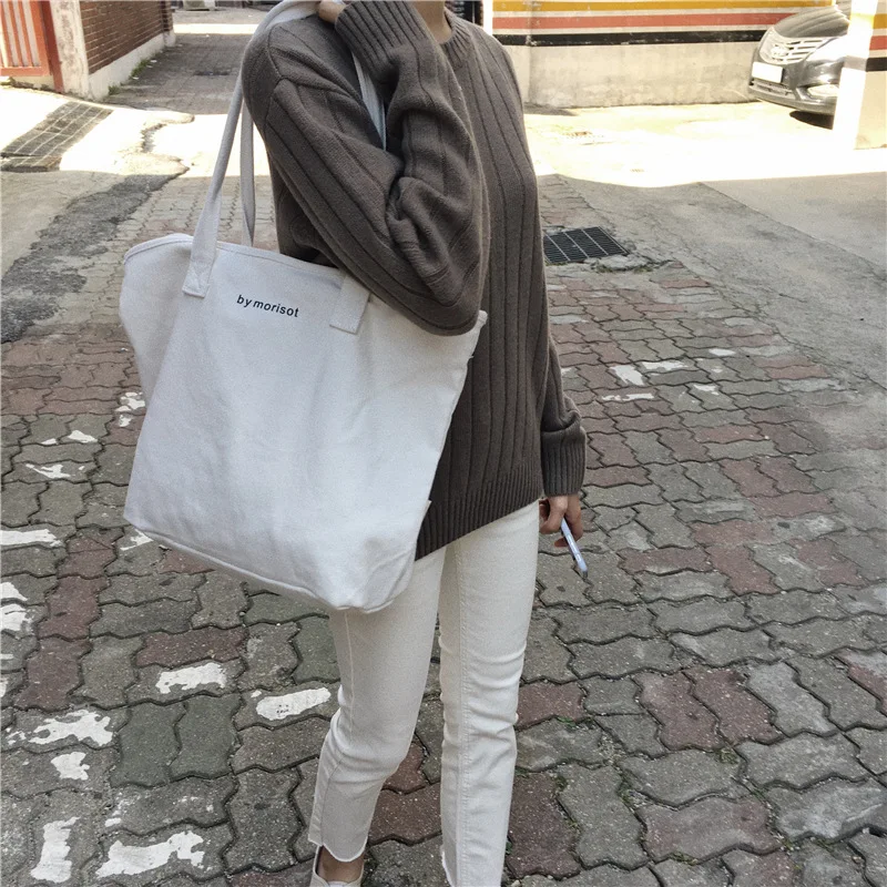 Новая вместительная холщовая женская сумка, удобная и универсальная сумка через плечо в минималистском стиле, с надписью и молнией, модель 2021