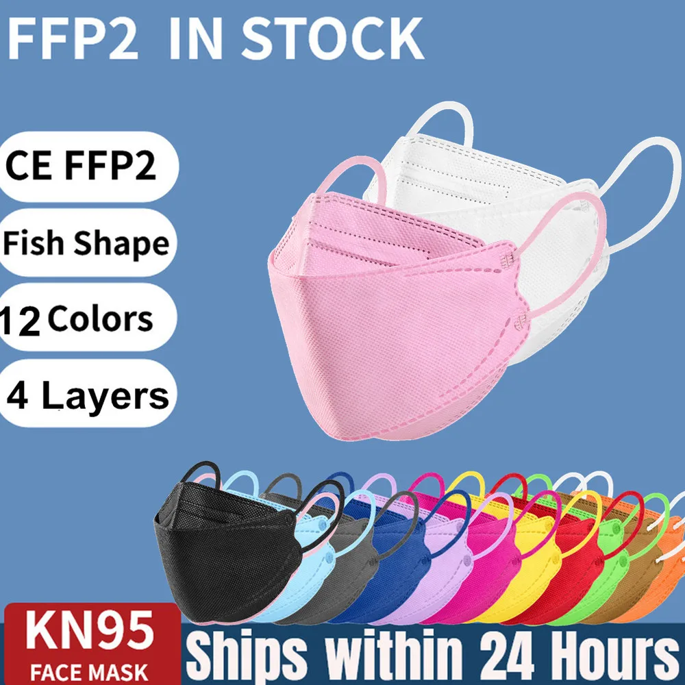 Mascarillas FPP2 Homologadas Европа микс цветов FFP2Mask Сертификат 4 слоев взрослых многоразового использования черной рыбы KN95 маска Быстрая доставка