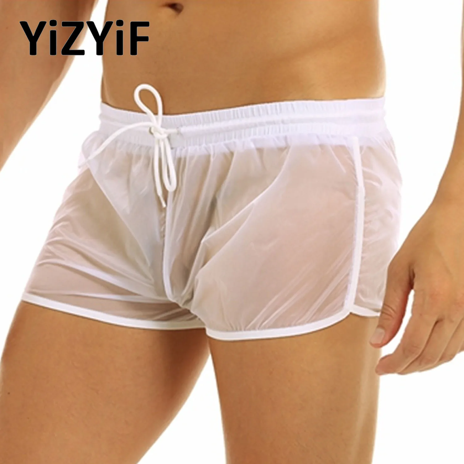 Мужские прозрачные шорты, сетчатые Прозрачные Боксеры на шнурке, шорты, плавки, нижнее белье