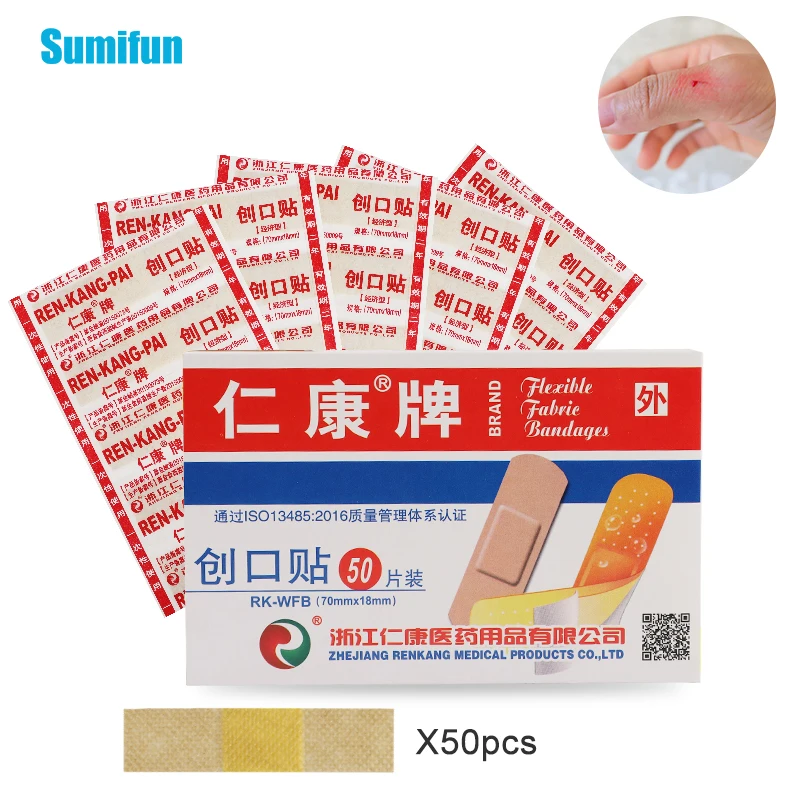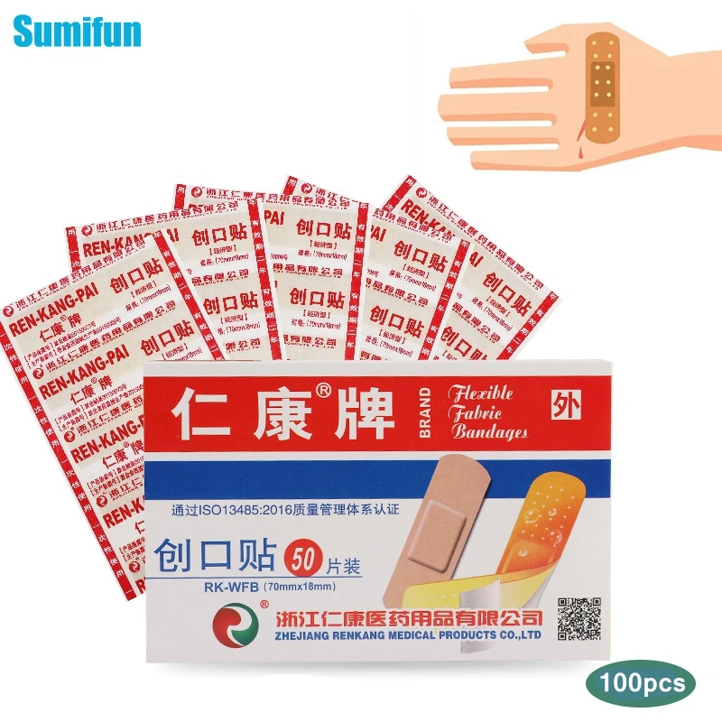 100 шт.2 коробки, Воздухопроницаемый пластырь для подушек, водостойкий пластырь для остановки кровотечения, бандаж для оказания первой помощи, Медицинская марля