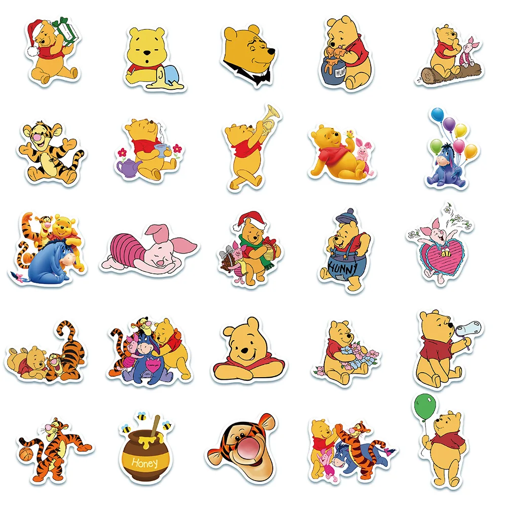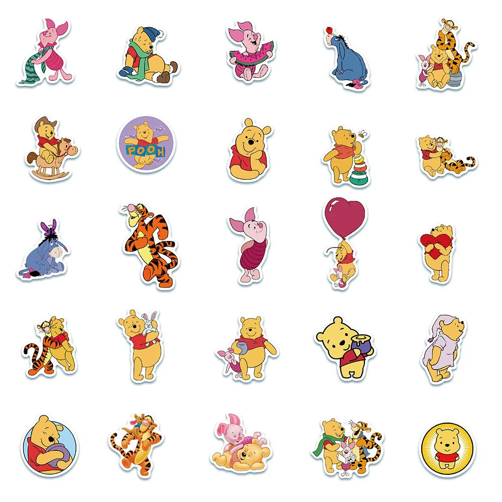 50 шт.компл. наклейки Винни-Пух Disney, Мультяшные аниме-фигурки, многофункциональные стики, блокнот, граффити, водонепроницаемые Стикеры