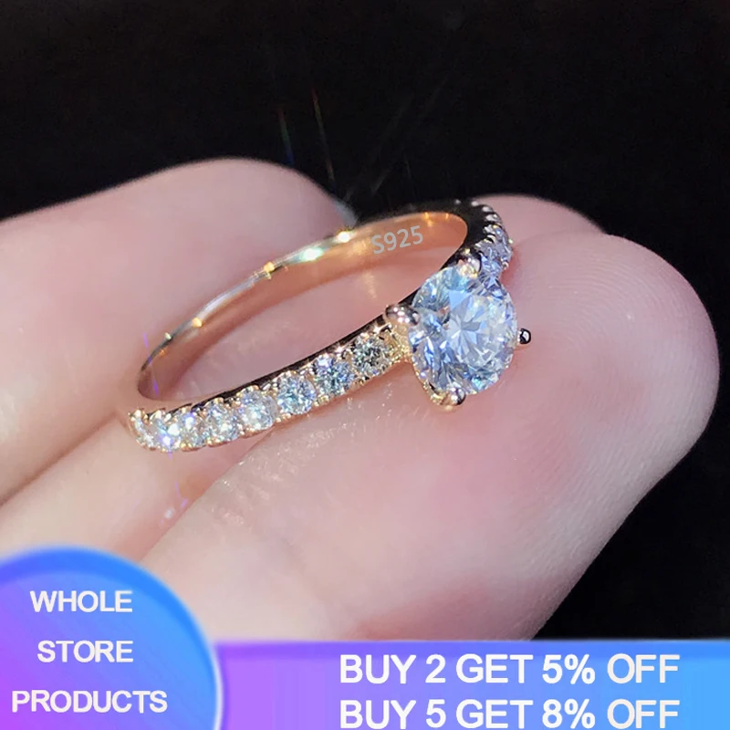 Женское Обручальное кольцо из стерлингового серебра 925 пробы с кристаллами цвета розового золота