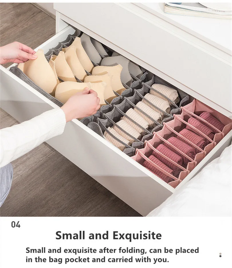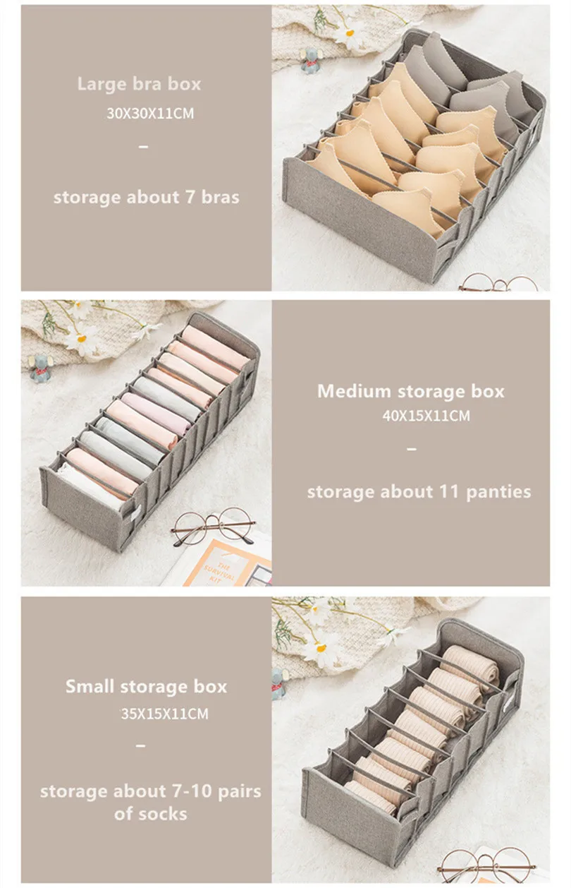 D стиль [Описание][Цвет]:Серый, розовый[Материал]:Хлопок и лен[Размер]:S:35X15X11cm (для носков)M:40X15X11cm (для нижнего белья)L:30X30X11cm (для бюстгальтера)[Особенности]-1. Храните ваши товары с ним быстро и аккуратно, что позволяет легко найти ваш товар-2. Легко складывать их, когда они не используются, чтобы сэкономить место, удобно для домашнего хранения.-3. Маленький и изысканный после складывания, можно поместить в карман сумки и носить с собой.-4. Изготовлен из хлопка и льна, без запаха, моющийся и прочный.[В комплект входит]:1 шт. х Коробка для хранения[Примечание]-1. Из-за различных партий продукции, детали продукта могут немного отличаться. Если вы проверяете разницу, пожалуйста, покупайте внимательно.-2. Замеры сделаны вручную, поэтому возможны отклонения на 1-3 см.-3. Из-за различных дисплеев и разного освещения изображение может не отражать фактический цвет изделия. Спасибо за понимание.