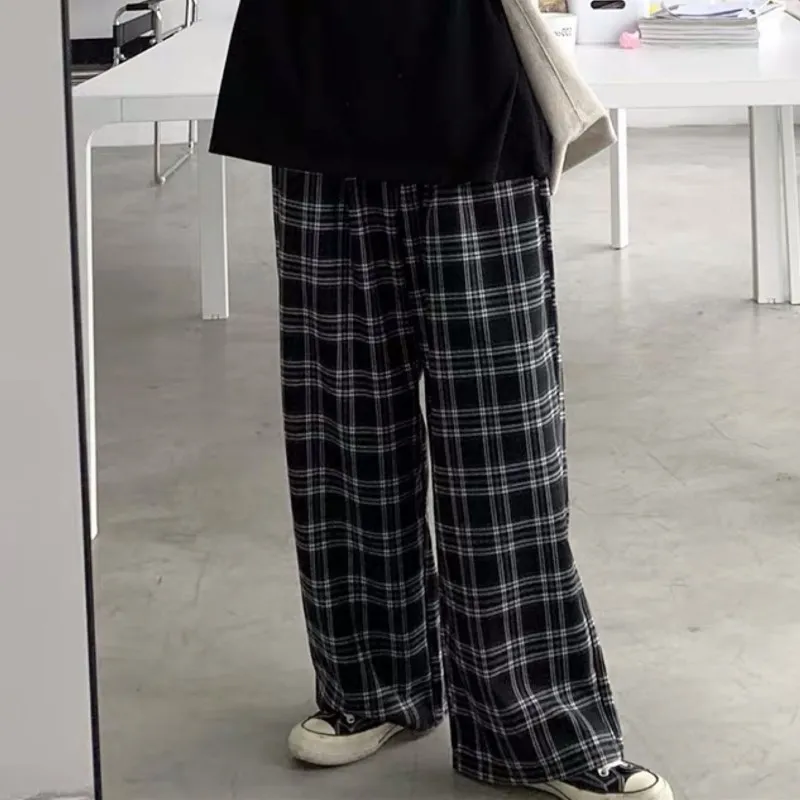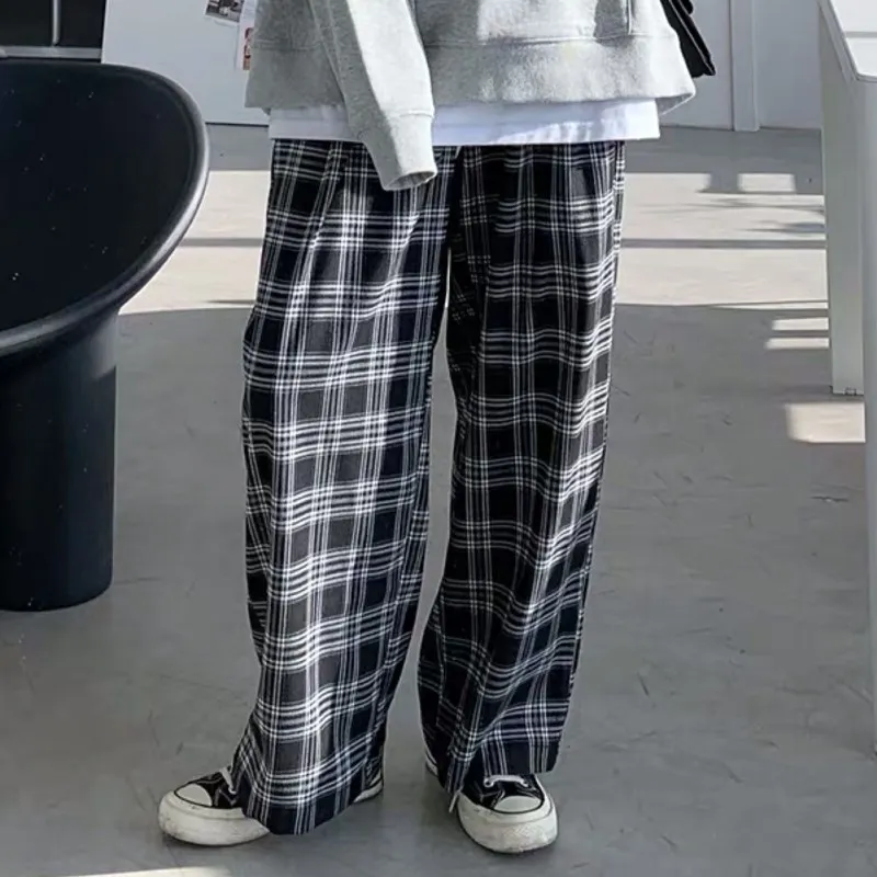 Повседневные шикарные клетчатые брюки в стиле Харадзюку 2021 уличная одежда широкие брюки женские Горячая Распродажа летние модные универсальные брюки в стиле хип-хоп унисекс