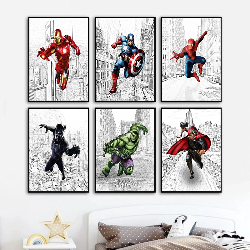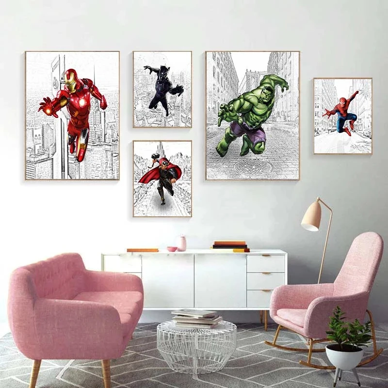 Мстители из комиксов Marvel Холст Картина Капитан Америка Человек-паук плакаты и принты настенные художественные принты для гостиной домашний декор
