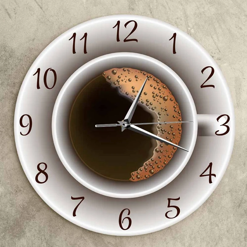 Чашка кофе с пеной декоративные бесшумные настенные часы декор кухн...