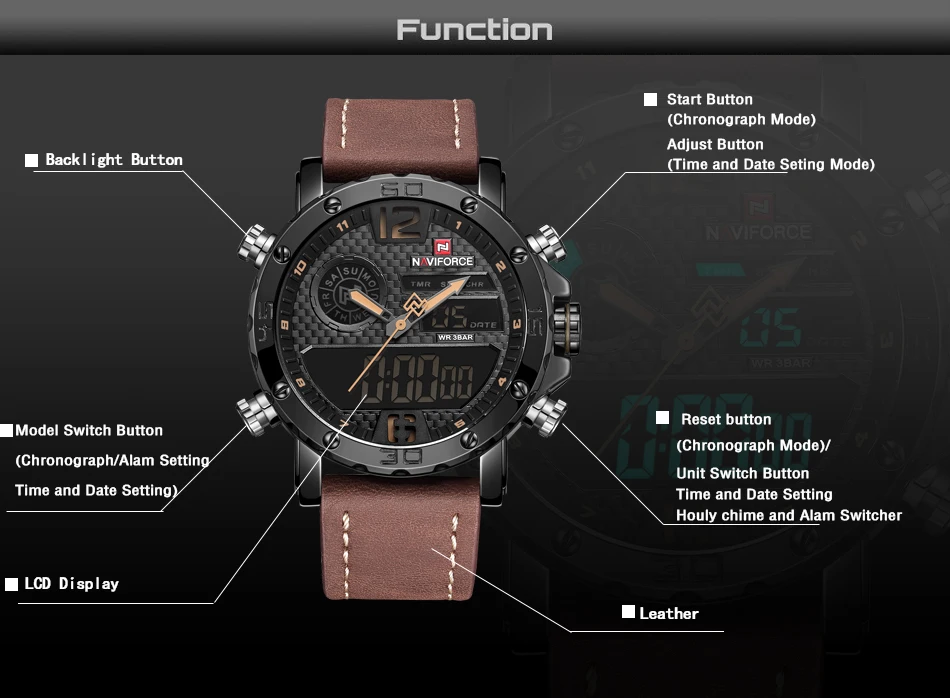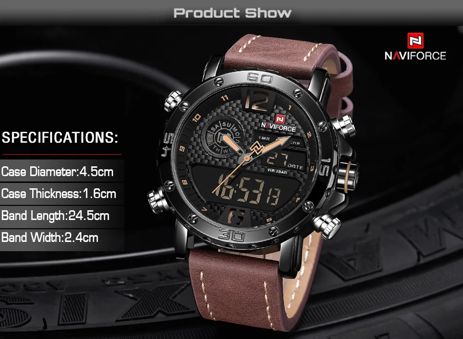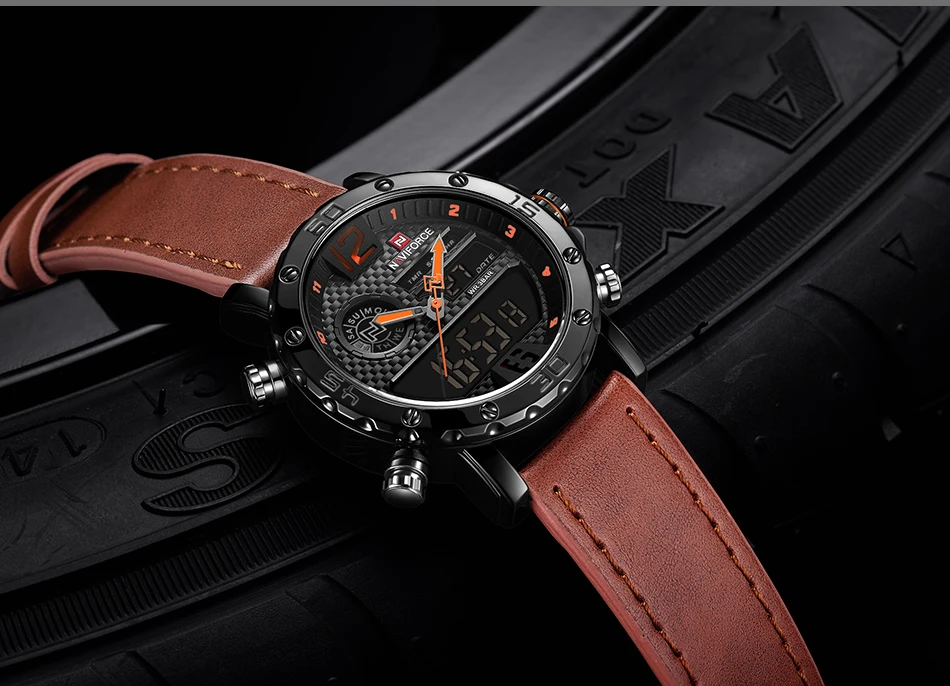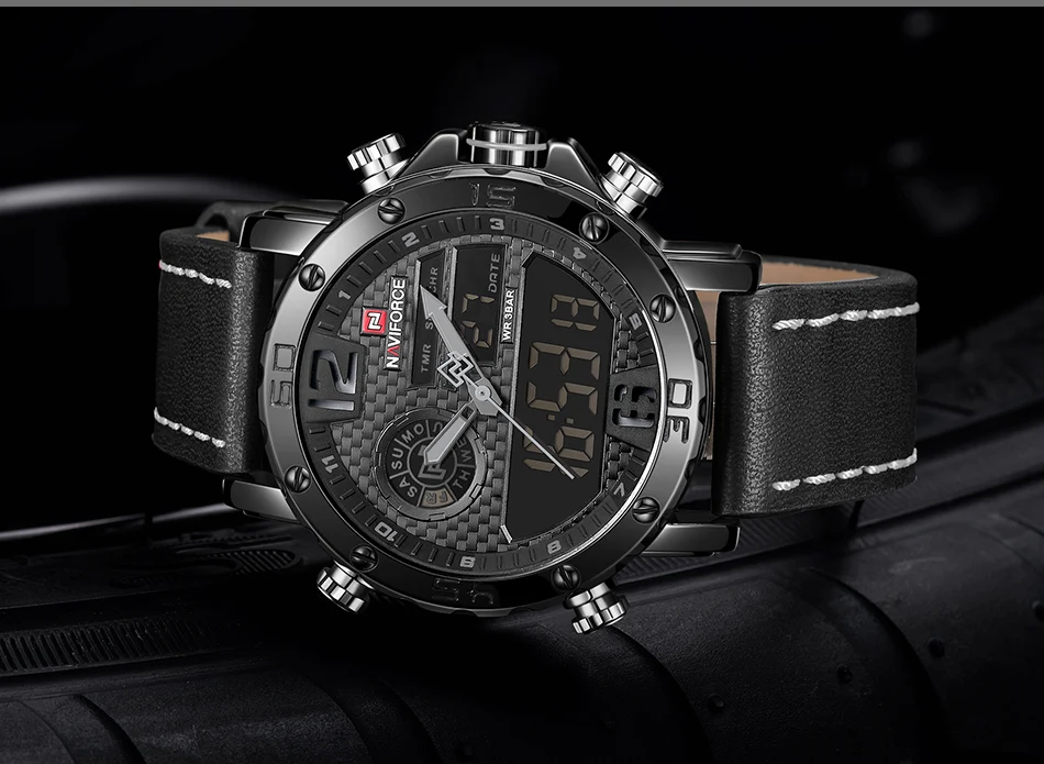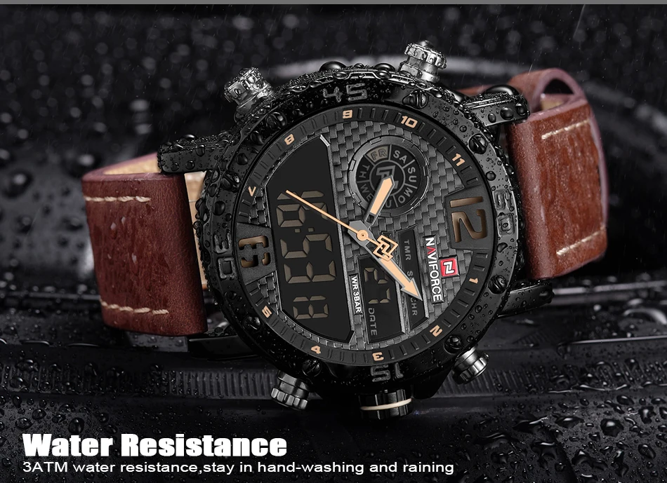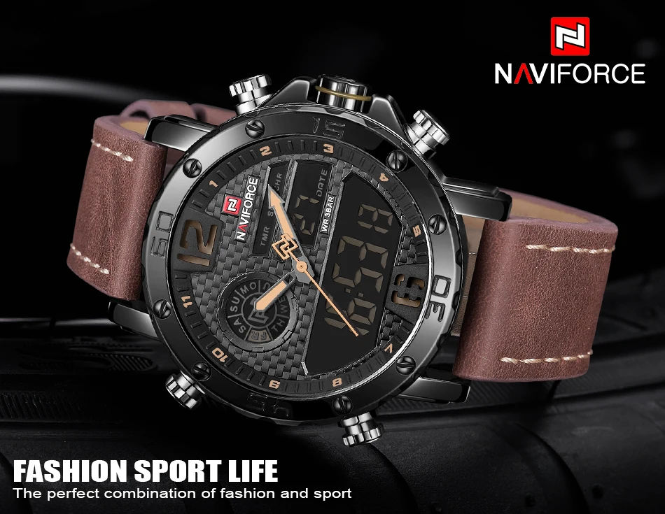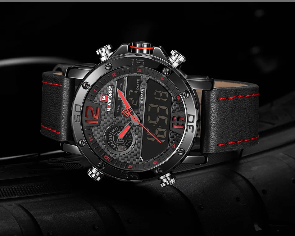 NAVIFORCE спортивные часы для мужчин, модные повседневные водонепроницаемые военные кварцевые наручные часы, мужские светодиодные цифровые часы с будильником