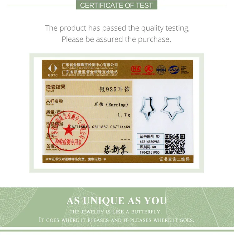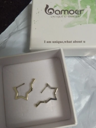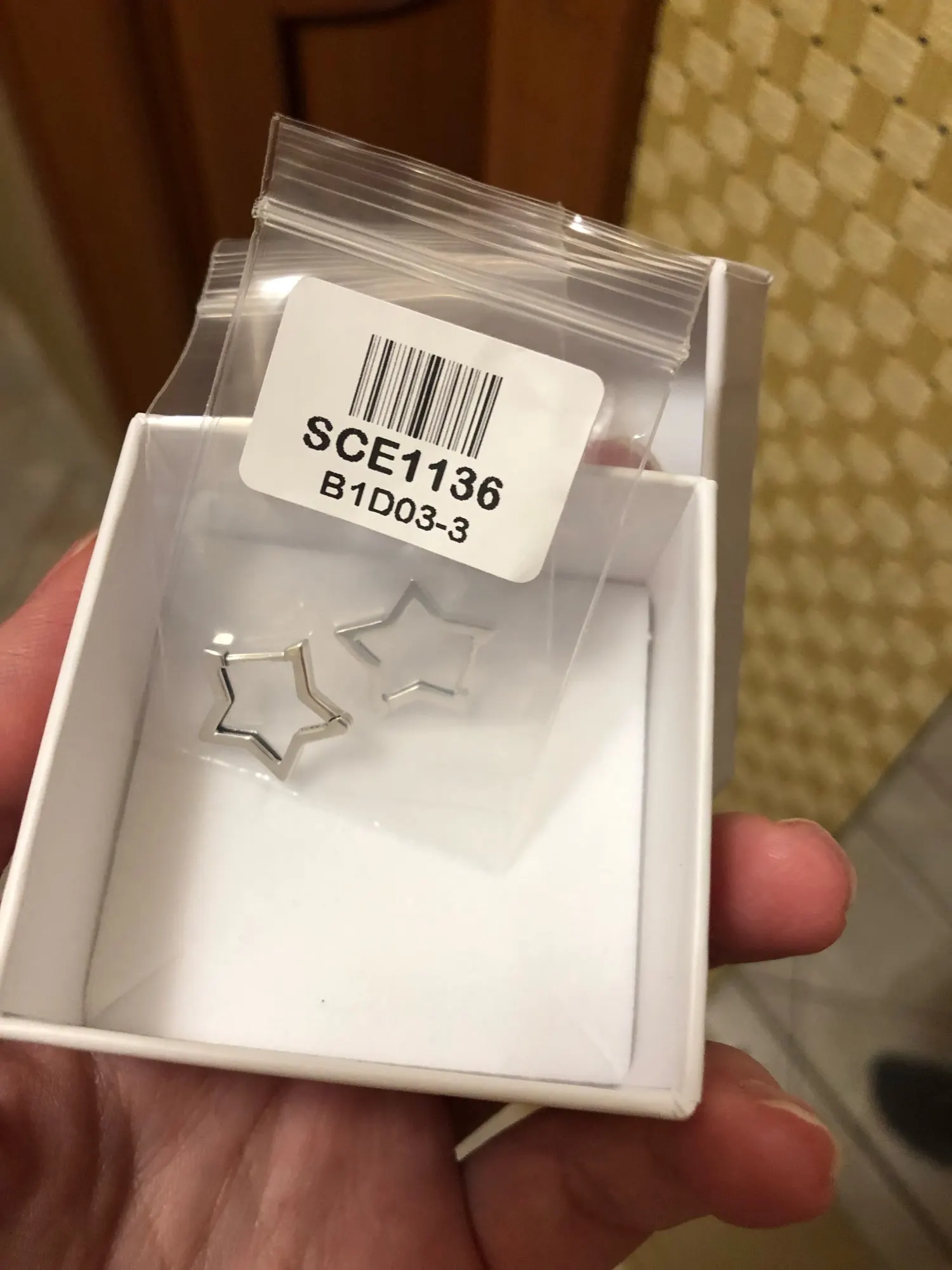 Мне понравились эти серьги, они красивые, серебряные, они хорошо закрываются, в форме звезды, они выглядят очень хорошо, и они не дают мне аллергии. Я уже сделал несколько заказов с этим продавцом, и он отправляет его очень быстро. Мне потребовалась неделя, чтобы прибыть, и хорошо защищены, каждая серьга в индивидуальной сумке, чтобы они не царапались между ними. Супер круто все. I Will buy again.