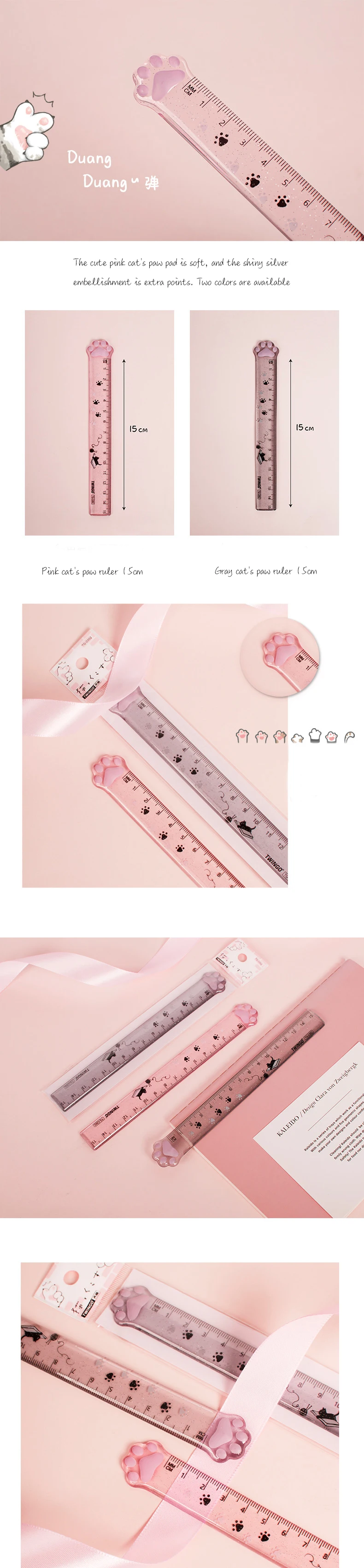 Милые пластиковые прямые линейки в виде кошачьей лапы, кавайные школьные офисные принадлежности аксессуары для планировщика студенческий приз