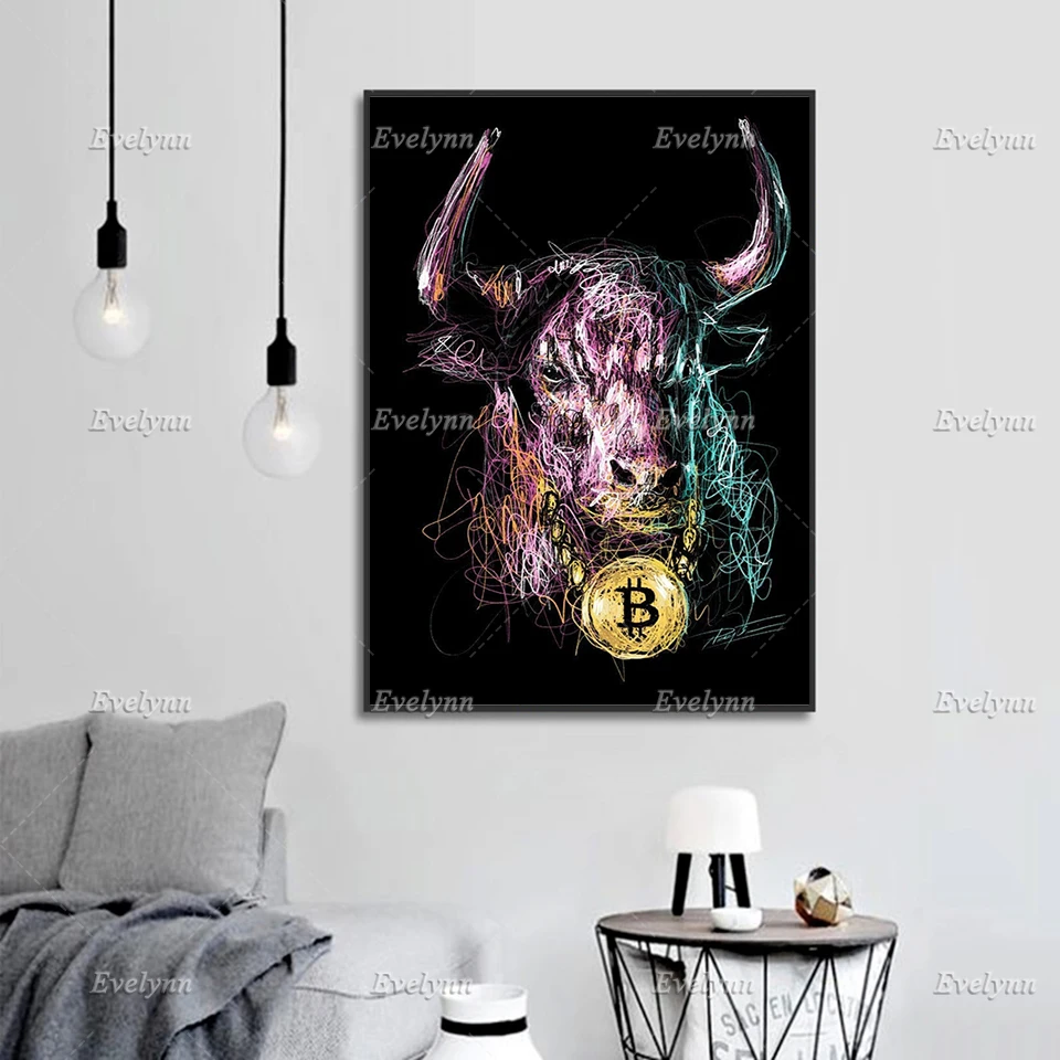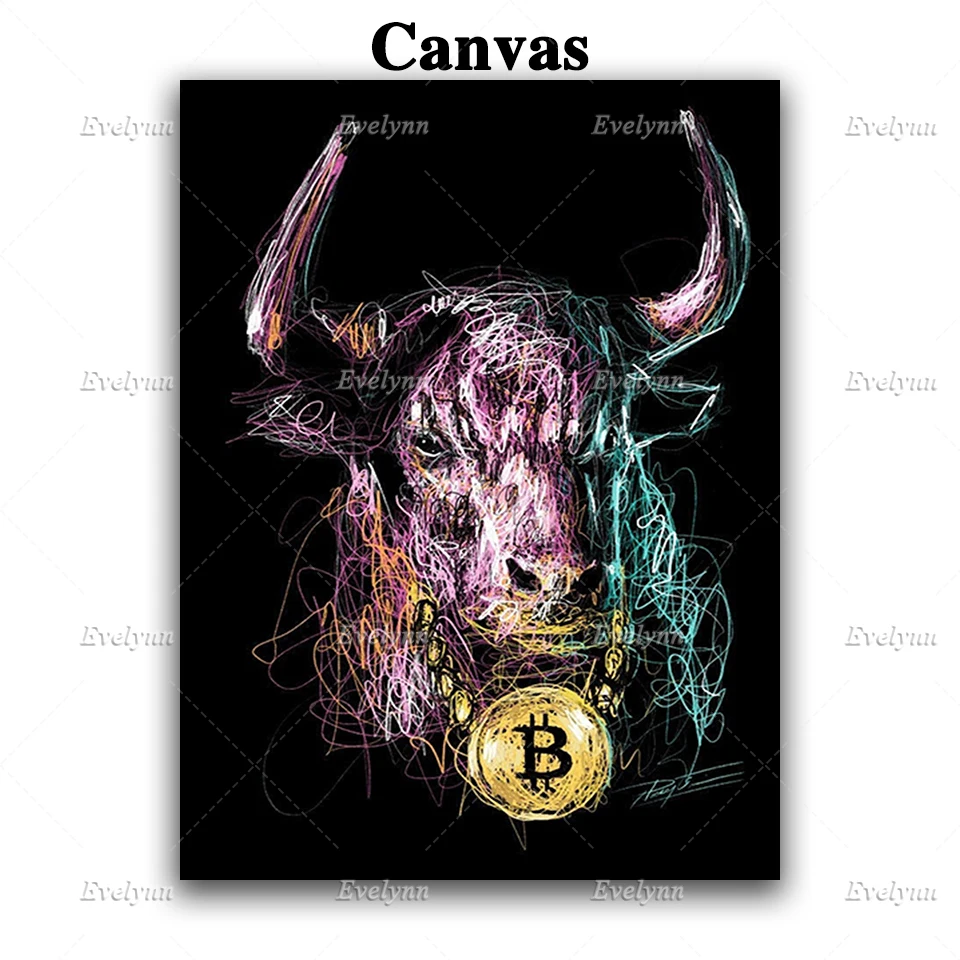 Биткоин искусство бычья мудрость постеры с масляной живописью и принты на холсте, настенное искусство, модульные картины, украшение для дома, плавающая рамка