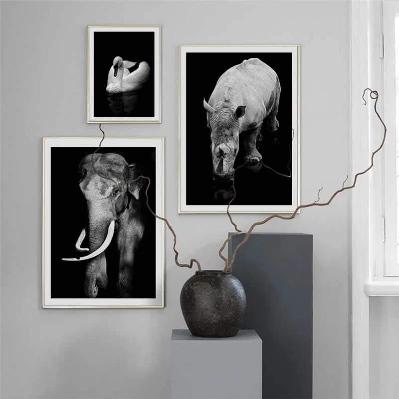 Холщовый постер с изображением животных, настенная живопись черно-б...