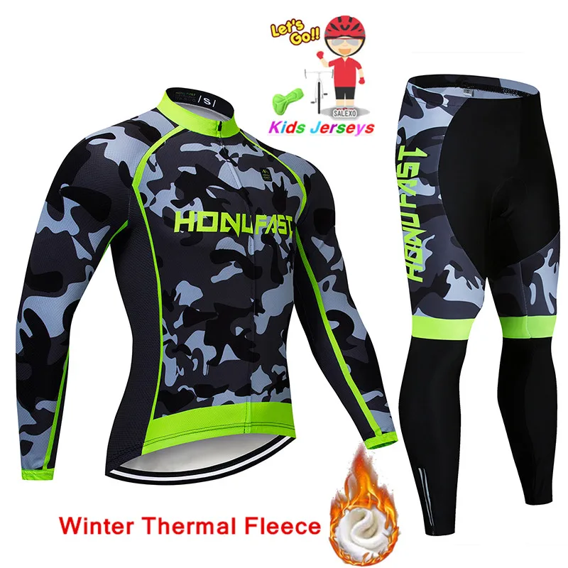 Детский велосипедный комплект из Джерси, Зимняя Теплая Флисовая дет...