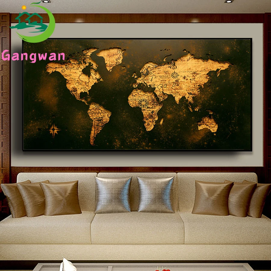 Картина из черного золота с изображением карты мира, алмазная живопись, вышивка крестиком, Алмазная мозаика, рукоделие, классический стиль, абстрактное настенное искусство