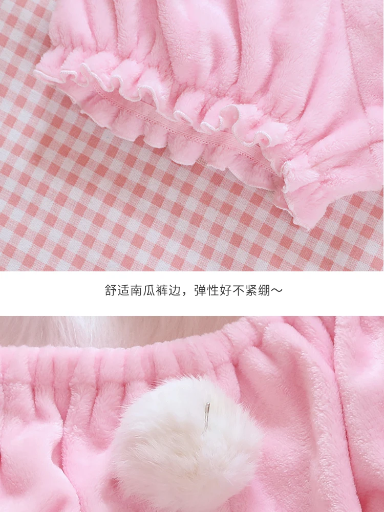 Розовый и белый бархатный топ и трусики Kwaii для девочек, очароват...
