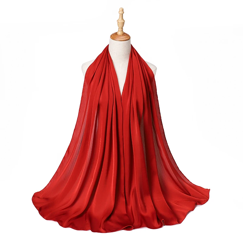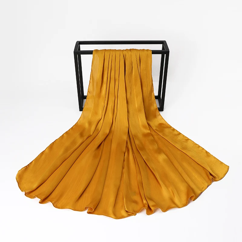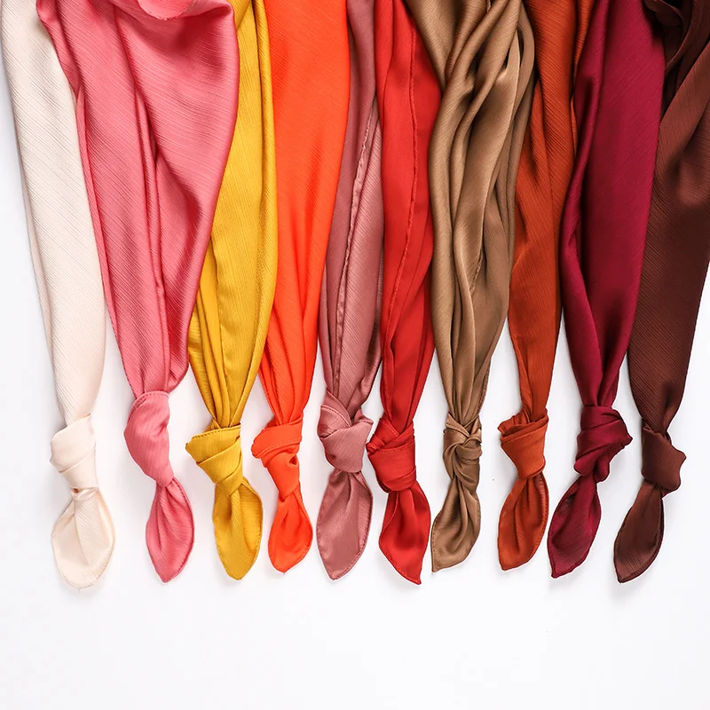 Новые сморщенные атласные шелковые хиджабы для женщин, Длинные однотонные хиджабы, 21 цвет