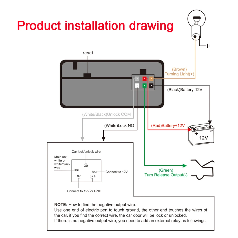 Особенности продукта: 1. Автоматическая блокировка/разблокировка мобильный телефон 2. Кнопка блокировки/разблокировки телефона 3. Откройте функцию задней коробки (она может работать только в том случае, если задний ящик автомобиля питается от электричества) 4. Ищите Особенности автомобиля Применимые модели: 1. Подходит для автомобилей 12 В 2. Общие двигатели Примечание: Когда продукт покидает фабрику, он по умолчанию выводится на отрицательный полюс. Если автомобиль имеет положительный полюсный выход, необходимо установить два реле 12 В, чтобы он мог нормально работать.
