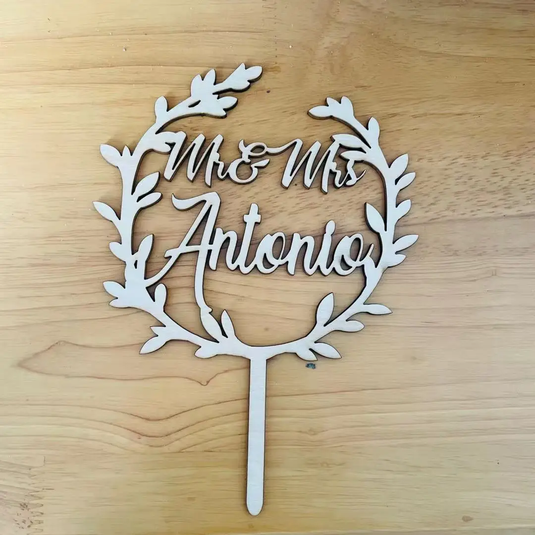 Персонализированный Деревянный Топпер для торта с именем пары, акри...